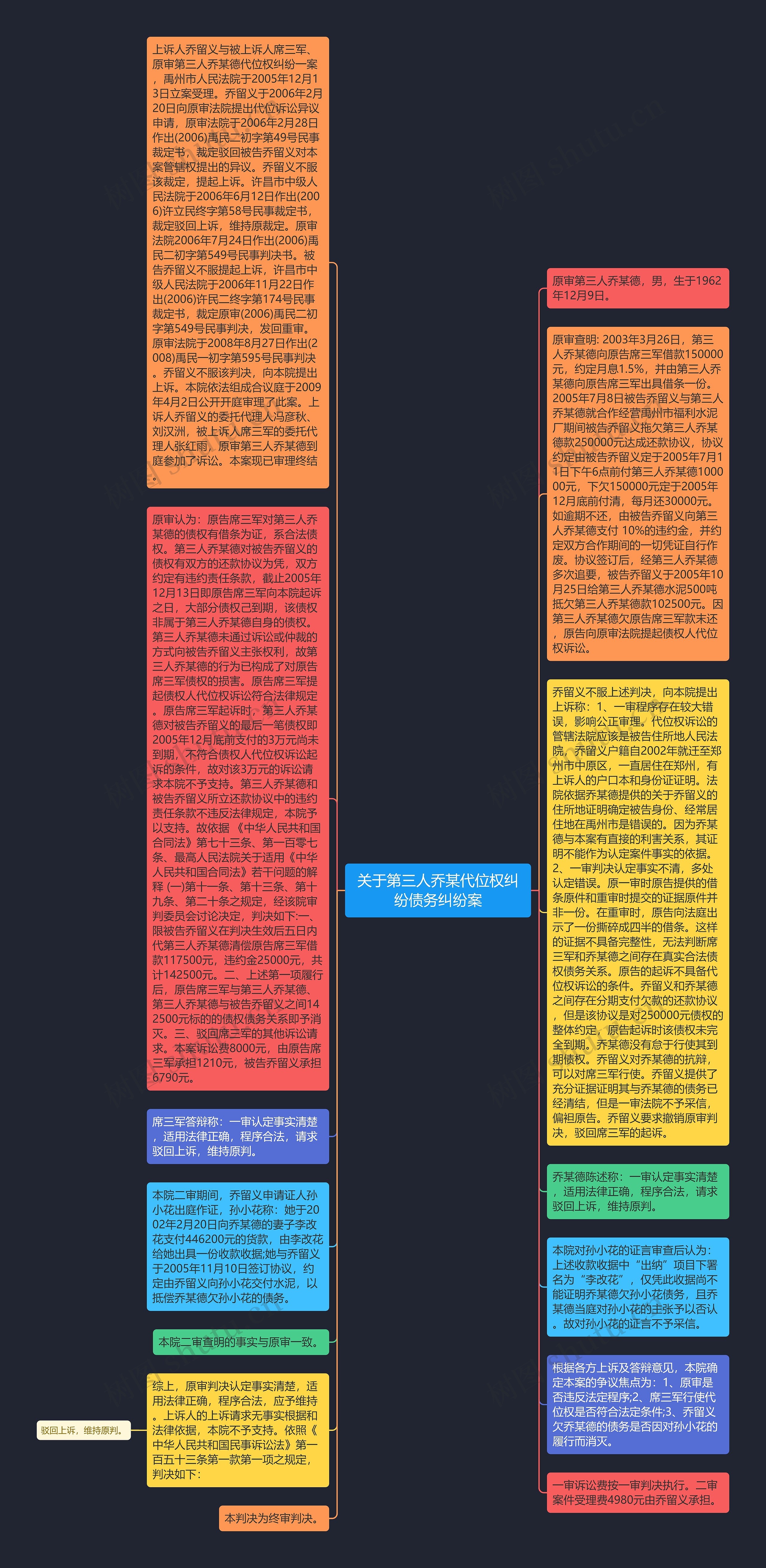 上诉人乔留义与被上诉人席三军、原审第三人乔某德代位权纠纷一案,禹州市人民法院于2005年12月13日立案受理。乔留义于2006年2月20日向原审法院提出代位诉讼异议申请,原审法院于2006年2月28日作出(2006)禹民二初字第49号民事裁定书,裁定驳回被告乔留义对本案管辖权提出的异议。乔留义不服该裁定,提起上诉。许昌市中级人民法院于2006年6月12日作出(2006)许立民终字第58号民事裁定书,裁定驳回上诉,维持原裁定。原审法院2006年7月24日作出(2006)禹民二初字第549号民事判决书。被告乔留义不服提起上诉,许昌市中级人民法院于2006年11月22日作出(2006)许民二终字第174号民事裁定书,裁定原审(2006)禹民二初字第549号民事判决,发回重审。原审法院于2008年8月27日作出(2008)禹民一初字第595号民事判决。乔留义不服该判决,向本院提出上诉。本院依法组成合议庭于2009年4月2日公开开庭审理了此案。上诉人乔留义的委托代理人冯彦秋、刘汉洲,被上诉人席三军的委托代理人张红雨,原审第三人乔某德到庭参加了诉讼。本案现已审理终结。