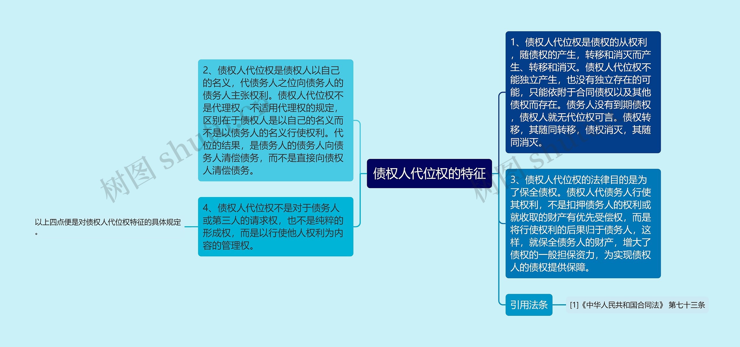 1、债权人代位权是债权的从权利,随债权的产生,转移和消灭而产生、转移和消灭。债权人代位权不能独立产生,也没有独立存在的可能,只能依附于合同债权以及其他债权而存在。债务人没有到期债权,债权人就无代位权可言。债权转移,其随同转移,债权消灭,其随同消灭。
