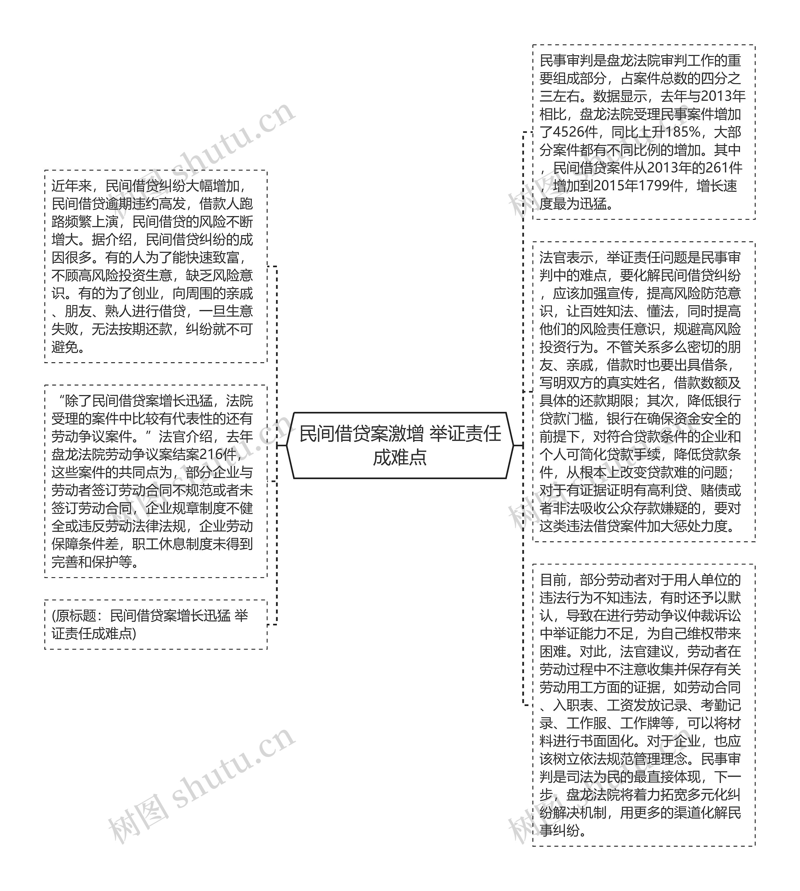 法官表示,举证责任问题是民事审判中的难点,要化解民间借贷纠纷,应该加强宣传,提高风险防范意识,让百姓知法、懂法,同时提高他们的风险责任意识,规避高风险投资行为。不管关系多么密切的朋友、亲戚,借款时也要出具借条,写明双方的真实姓名,借款数额及具体的还款期限;其次,降低银行贷款门槛,银行在确保资金安全的前提下,对符合贷款条件的企业和个人可简化贷款手续,降低贷款条件,从根本上改变贷款难的问题;对于有证据证明有高利贷、赌债或者非法吸收公众存款嫌疑的,要对这类违法借贷案件加大惩处力度。