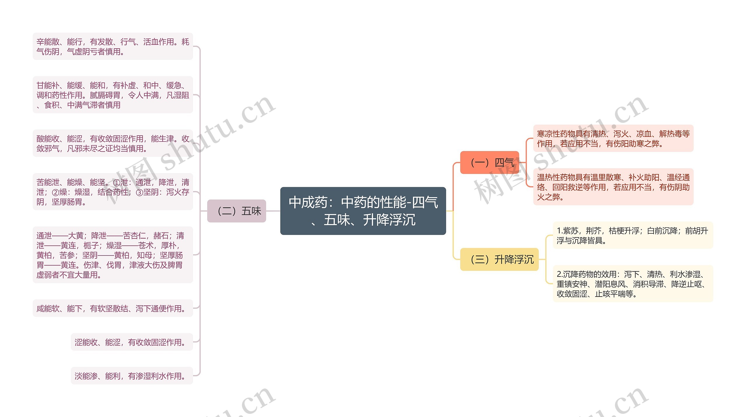 树图思维导图提供《中成药:中药的性能-四气、五味、升降浮沉》在线思维导图免费制作,点击“编辑”按钮,可对《中成药:中药的性能-四气、五味、升降浮沉》进行在线思维导图编辑,本思维导图属于思维导图模板主题,文件编号是:f5612dae731aa72cf01c66695458ac3f