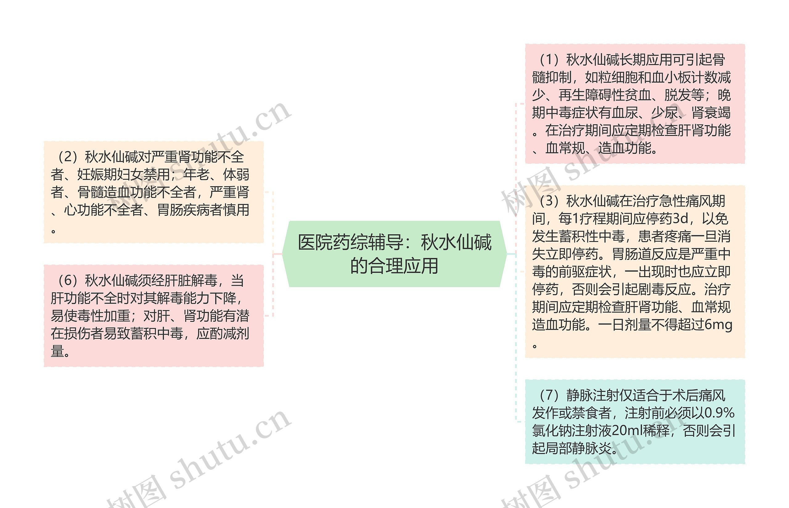 树图思维导图提供《医院药综辅导:秋水仙碱的合理应用》在线思维导图免费制作,点击“编辑”按钮,可对《医院药综辅导:秋水仙碱的合理应用》进行在线思维导图编辑,本思维导图属于思维导图模板主题,文件编号是:77273d0e0e615eb6424b0f94735c83c2