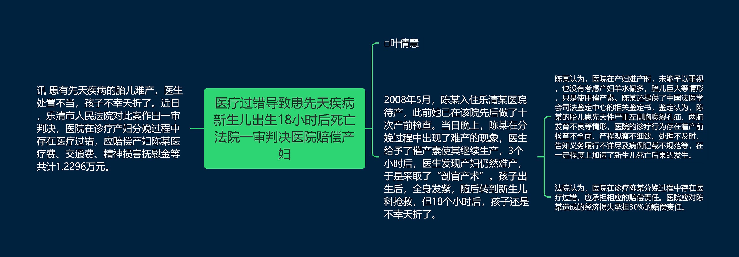 树图思维导图提供《医疗过错导致患先天疾病新生儿出生18小时后死亡法院一审判决医院赔偿产妇》在线思维导图免费制作,点击“编辑”按钮,可对《医疗过错导致患先天疾病新生儿出生18小时后死亡法院一审判决医院赔偿产妇》进行在线思维导图编辑,本思维导图属于思维导图模板主题,文件编号是:3af717f6e920e5e4b9652a74ff64c0b3