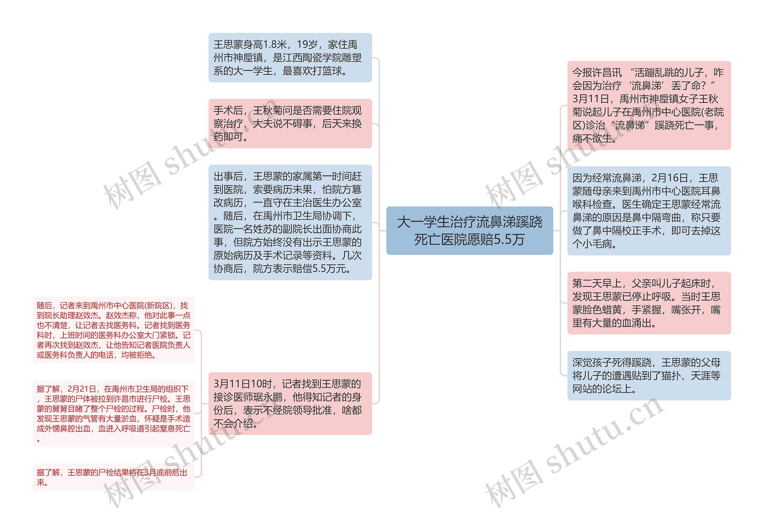 据了解,2月21日,在禹州市卫生局的组织下,王思蒙的尸体被拉到许昌市进行尸检。王思蒙的舅舅目睹了整个尸检的过程。尸检时,他发现王思蒙的气管有大量淤血,怀疑是手术造成外甥鼻腔出血,血进入呼吸道引起窒息死亡。