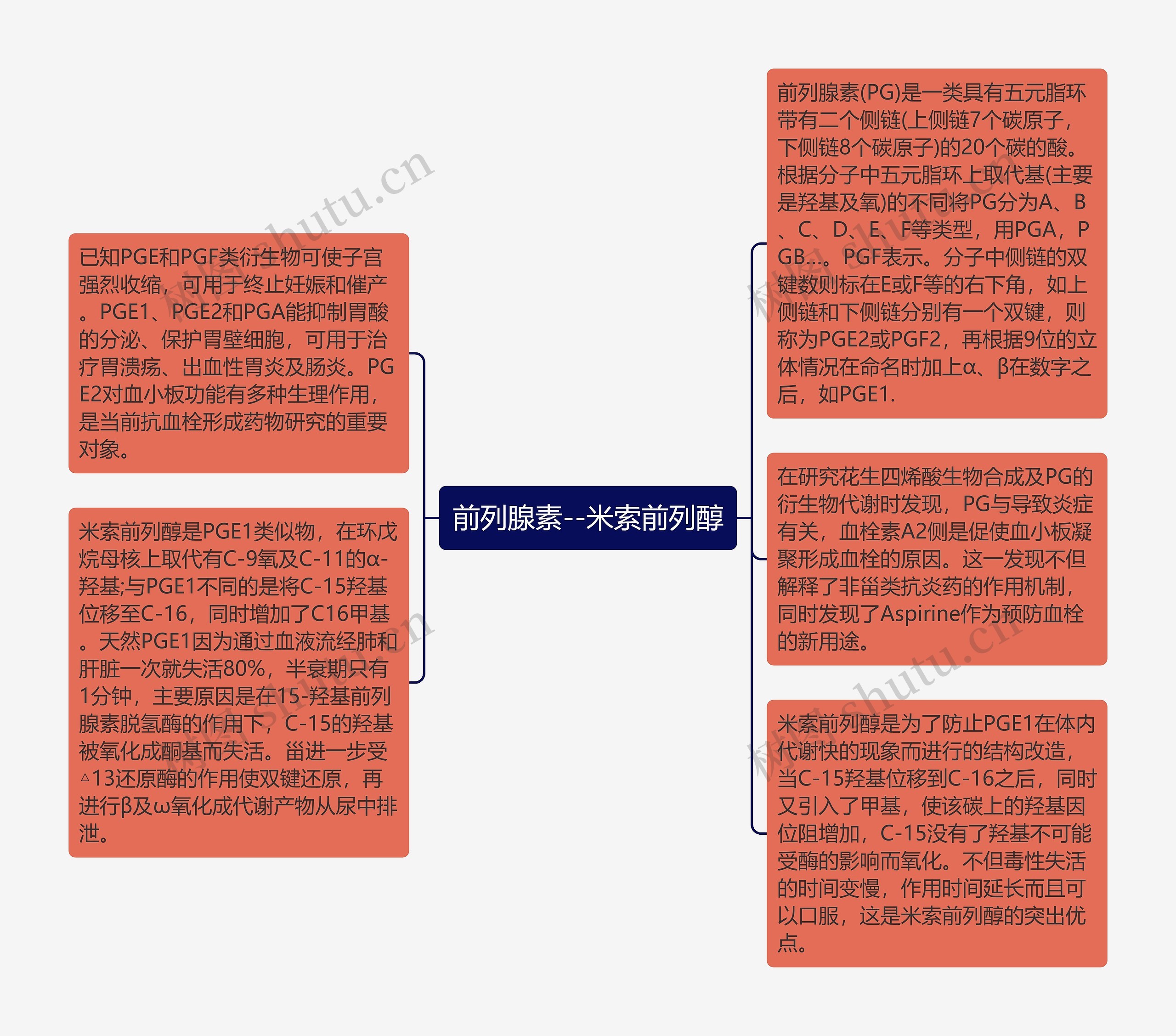 米索前列醇是PGE1类似物,在环戊烷母核上取代有C-9氧及C-11的α-羟基;与PGE1不同的是将C-15羟基位移至C-16,同时增加了C16甲基。天然PGE1因为通过血液流经肺和肝脏一次就失活80%,半衰期只有1分钟,主要原因是在15-羟基前列腺素脱氢酶的作用下,C-15的羟基被氧化成酮基而失活。甾进一步受△13还原酶的作用使双键还原,再进行β及ω氧化成代谢产物从尿中排泄。
