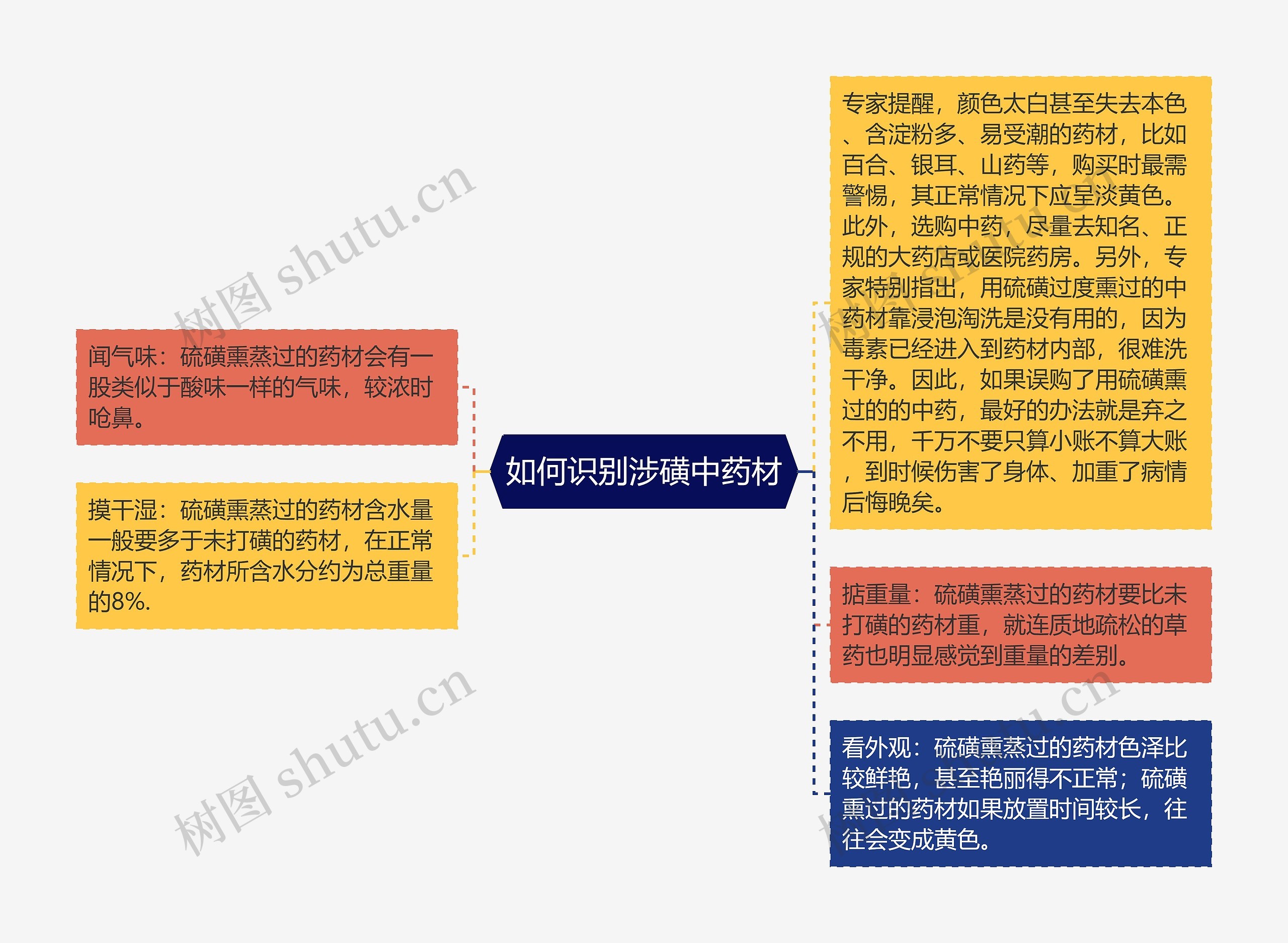 树图思维导图提供《如何识别涉磺中药材》在线思维导图免费制作,点击“编辑”按钮,可对《如何识别涉磺中药材》进行在线思维导图编辑,本思维导图属于思维导图模板主题,文件编号是:adc9b4649a00fd8c604b06c69229b5fb