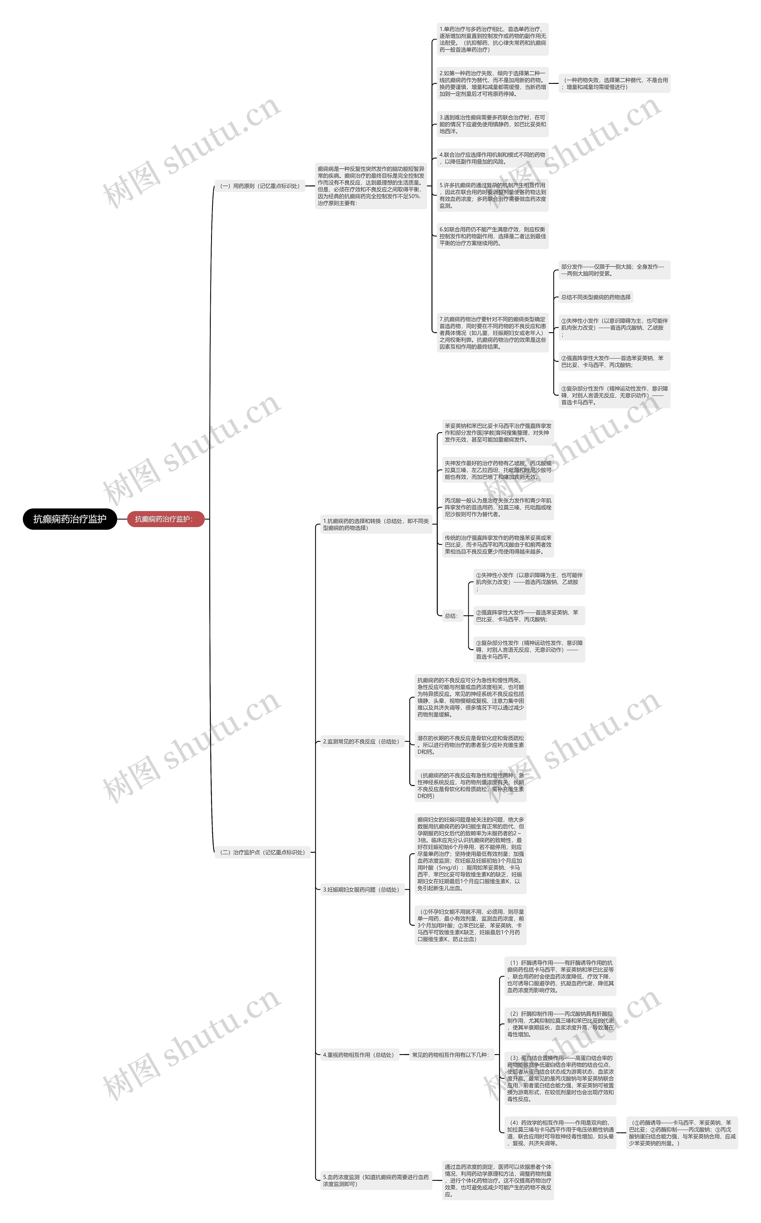 5.许多抗癫痫药通过复杂的机制产生相互作用,因此在联合用药时要调整剂量使各药物达到有效血药浓度;多药联合治疗需要做血药浓度监测。