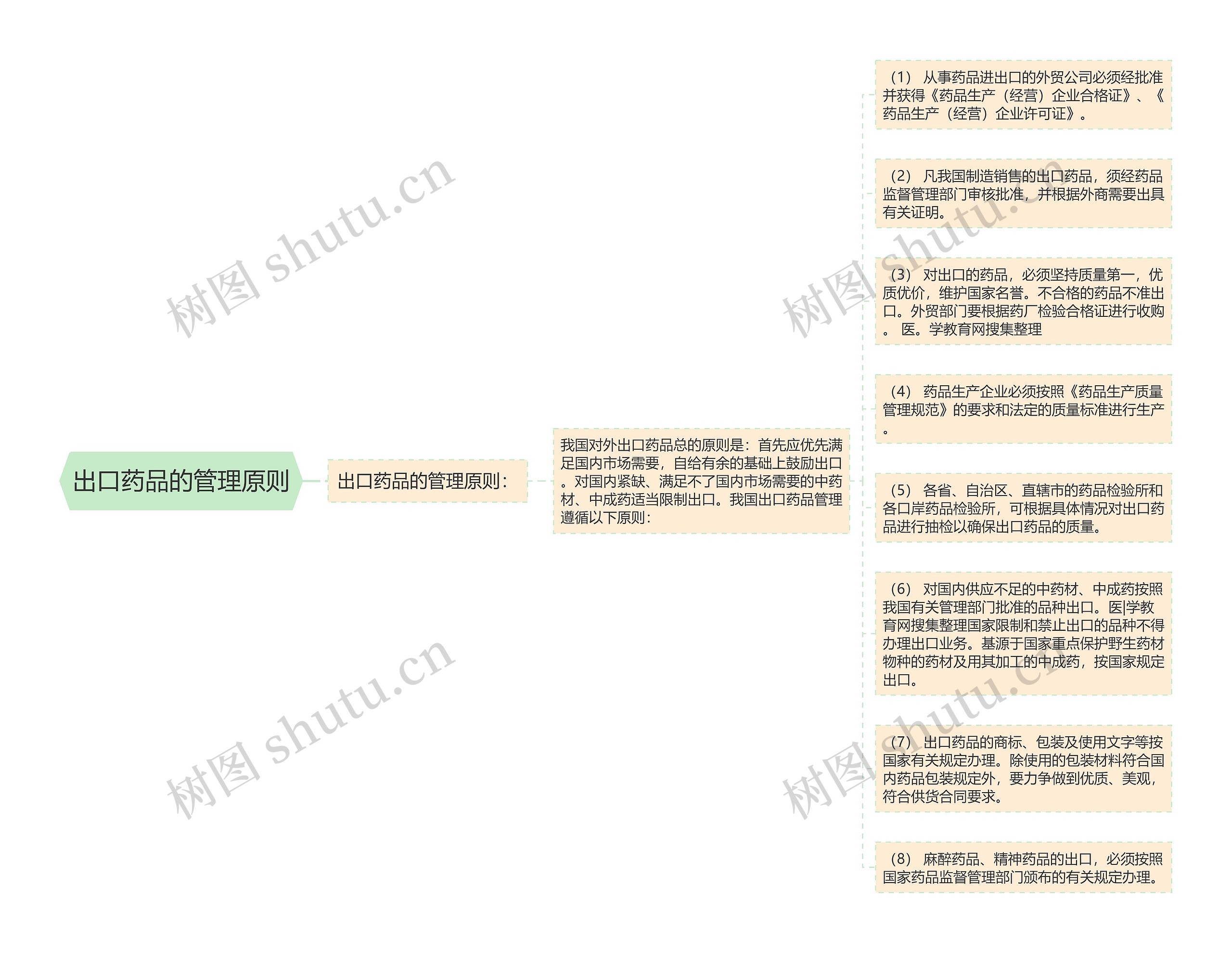 (6) 对国内供应不足的中药材、中成药按照我国有关管理部门批准的品种出口。医|学教育网搜集整理国家限制和禁止出口的品种不得办理出口业务。基源于国家重点保护野生药材物种的药材及用其加工的中成药,按国家规定出口。