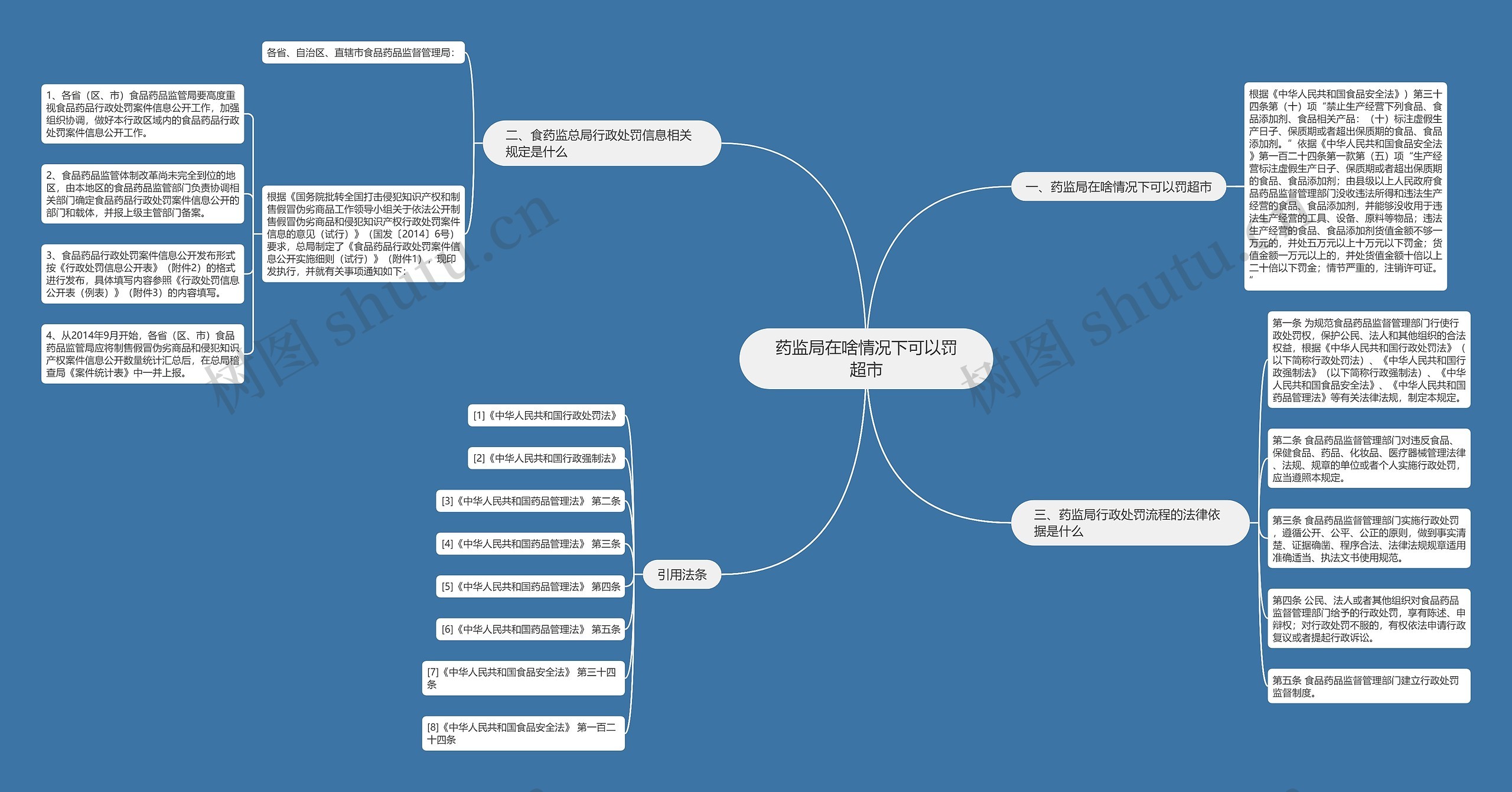 树图思维导图提供《药监局在啥情况下可以罚超市》在线思维导图免费制作,点击“编辑”按钮,可对《药监局在啥情况下可以罚超市》进行在线思维导图编辑,本思维导图属于思维导图模板主题,文件编号是:96e4c68e68b0734e2daa3d383a373384