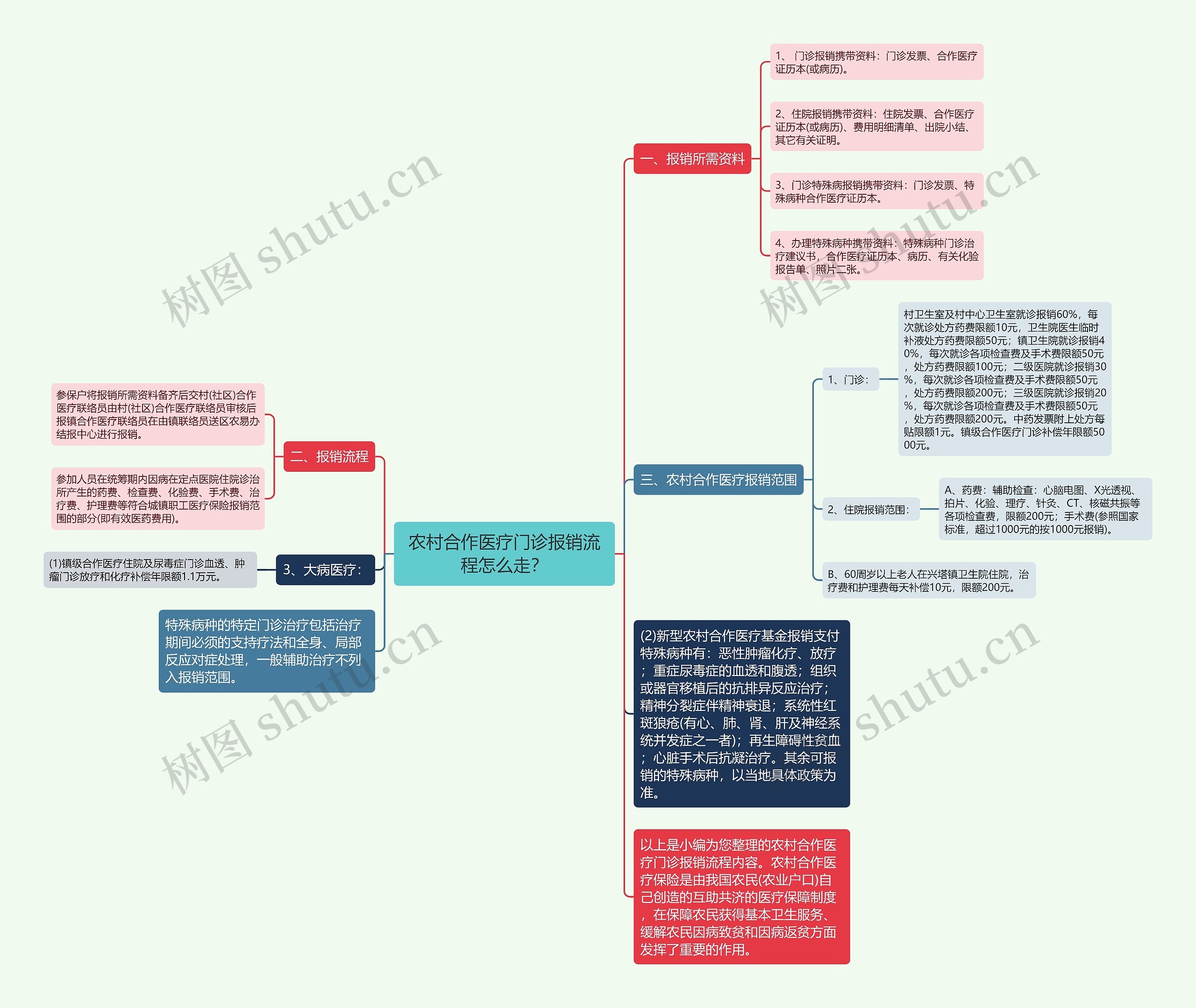 树图思维导图提供《农村合作医疗门诊报销流程怎么走?》在线思维导图免费制作,点击“编辑”按钮,可对《农村合作医疗门诊报销流程怎么走?》进行在线思维导图编辑,本思维导图属于思维导图模板主题,文件编号是:1d4c8200b13fdf073b2c3c6b7dd40ece
