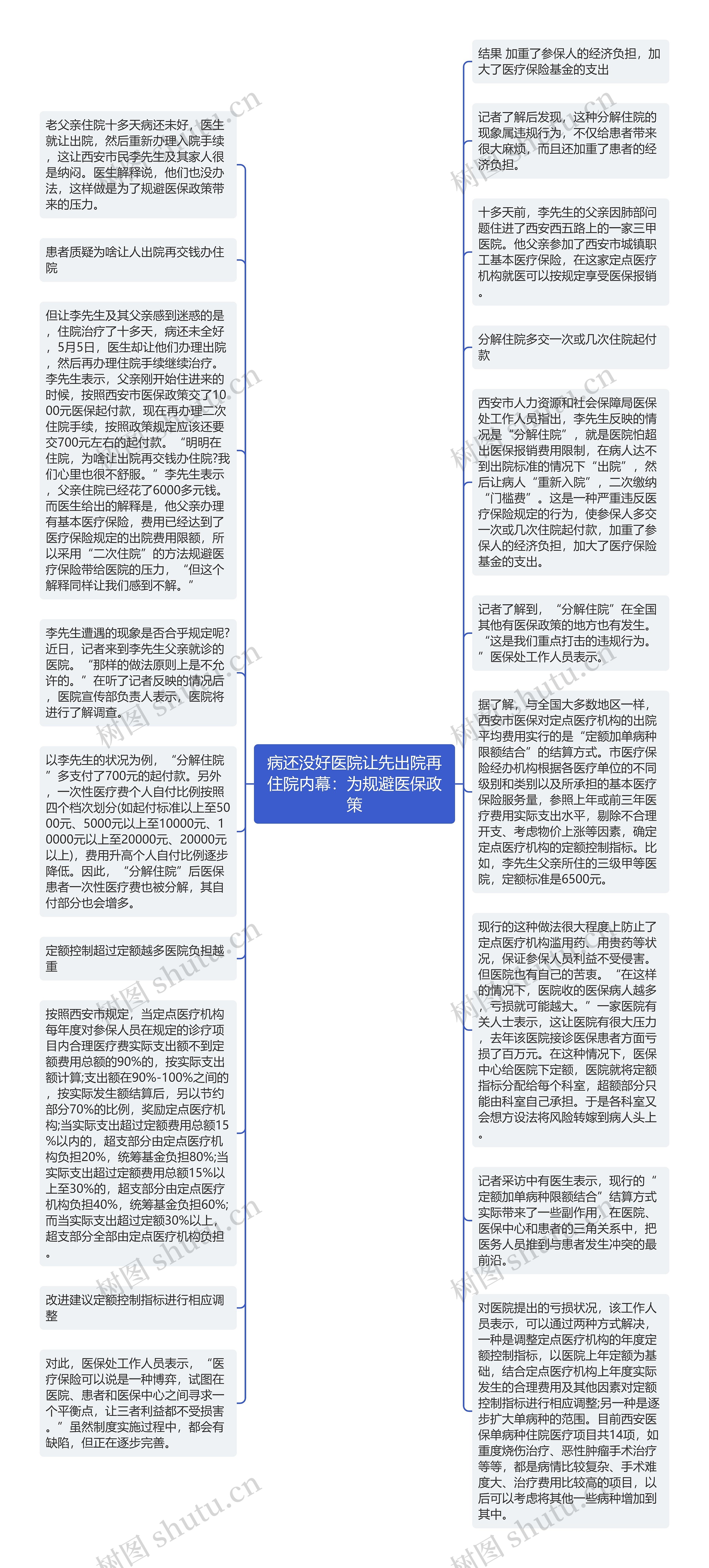 西安市人力资源和社会保障局医保处工作人员指出,李先生反映的情况是“分解住院”,就是医院怕超出医保报销费用限制,在病人达不到出院标准的情况下“出院”,然后让病人“重新入院”,二次缴纳“门槛费”。这是一种严重违反医疗保险规定的行为,使参保人多交一次或几次住院起付款,加重了参保人的经济负担,加大了医疗保险基金的支出。