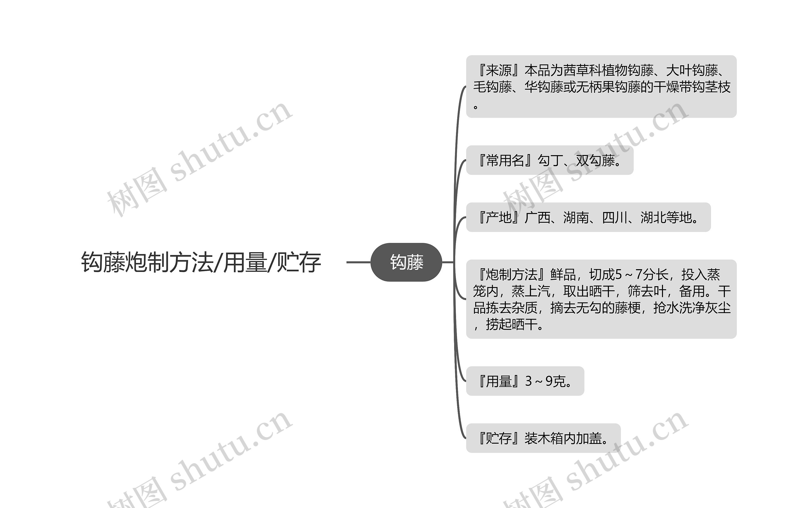 树图思维导图提供《钩藤炮制方法/用量/贮存》在线思维导图免费制作,点击“编辑”按钮,可对《钩藤炮制方法/用量/贮存》进行在线思维导图编辑,本思维导图属于思维导图模板主题,文件编号是:fbd66c424cccf8e1383abc396c8e0bc0