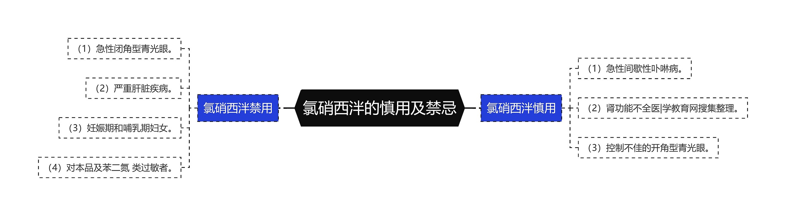 氯硝西泮慎用 (1)急性间歇性卟啉病。 (2)肾功能不全医|学教育网搜集整理。 (3)控制不佳的开角型青光眼。 氯硝西泮禁用 (1)急性闭角型青光眼。 (2)严重肝脏疾病。 (3)妊娠期和哺乳期妇女。 (4)对本品及苯二氮 类过敏者。