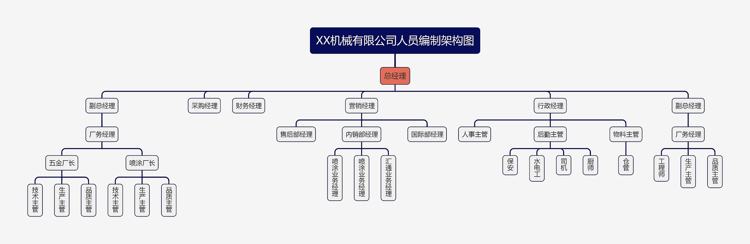 机械有限公司人员编制图总经理副总经理采购经理 财务经理 营销经理厂务经理 五金厂长 售内国
