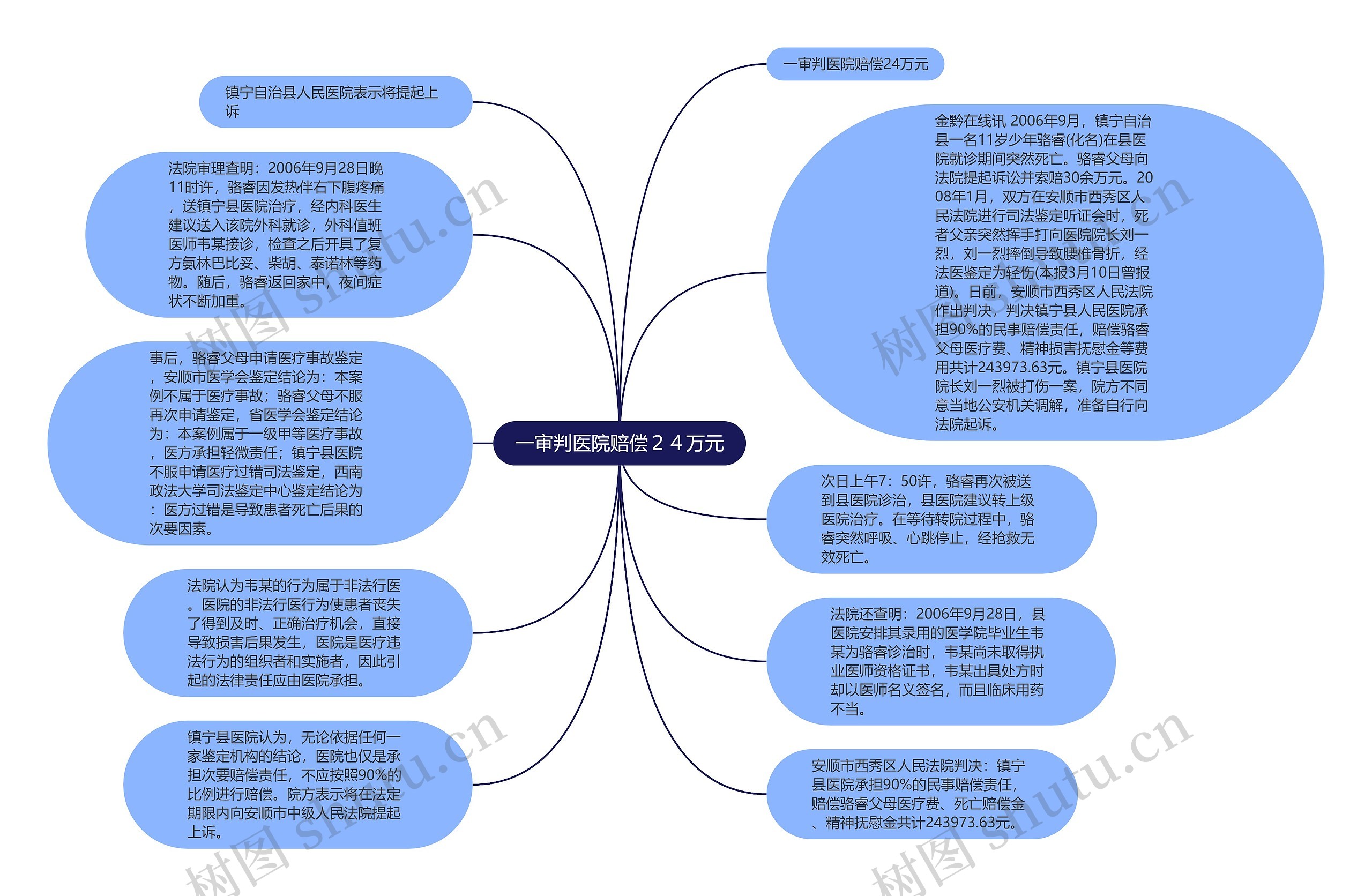 安顺市西秀区人民法院判决:镇宁县医院承担90%的民事赔偿责任,赔偿骆睿父母医疗费、死亡赔偿金、精神抚慰金共计243973.63元。
