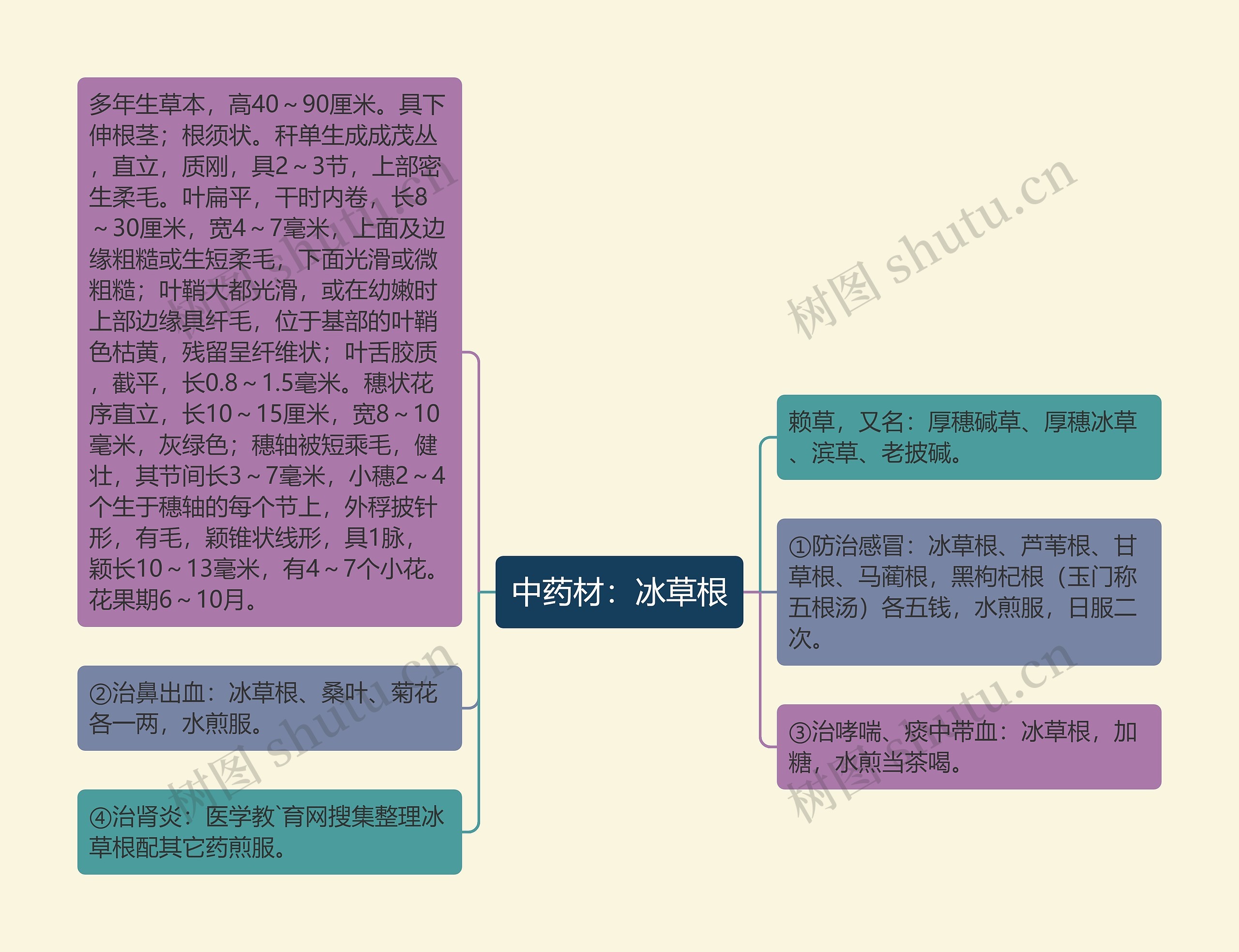 树图思维导图提供《中药材:冰草根》在线思维导图免费制作,点击“编辑”按钮,可对《中药材:冰草根》进行在线思维导图编辑,本思维导图属于思维导图模板主题,文件编号是:36ee3f33e0646ac6cc69b57e50116ee0