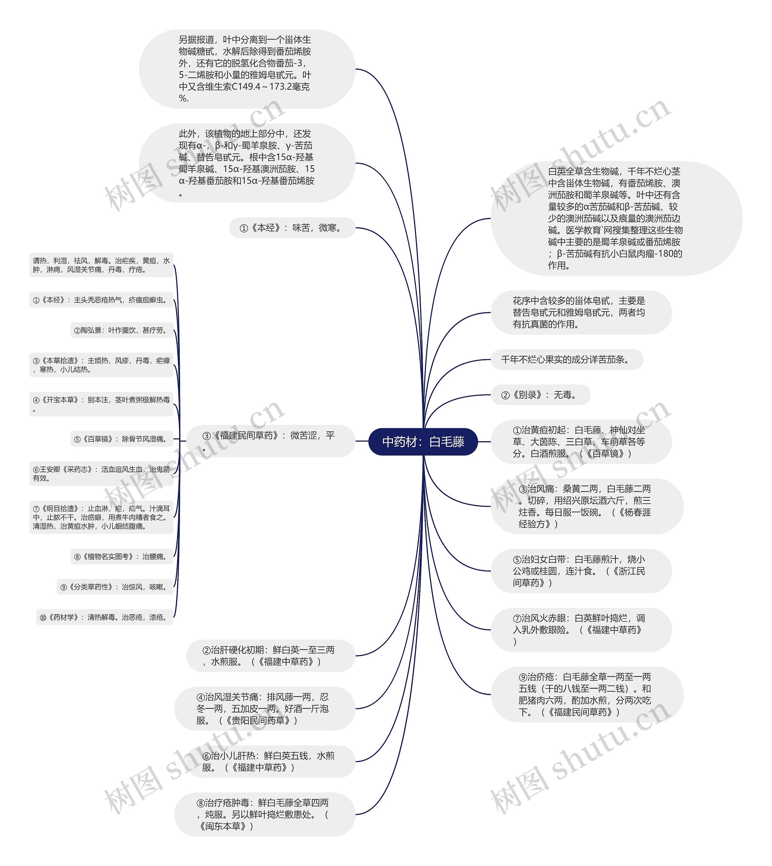 ⑧治疗疮肿毒:鲜白毛藤全草四两,炖服。另以鲜叶捣烂敷患处。(《闽东本草》)