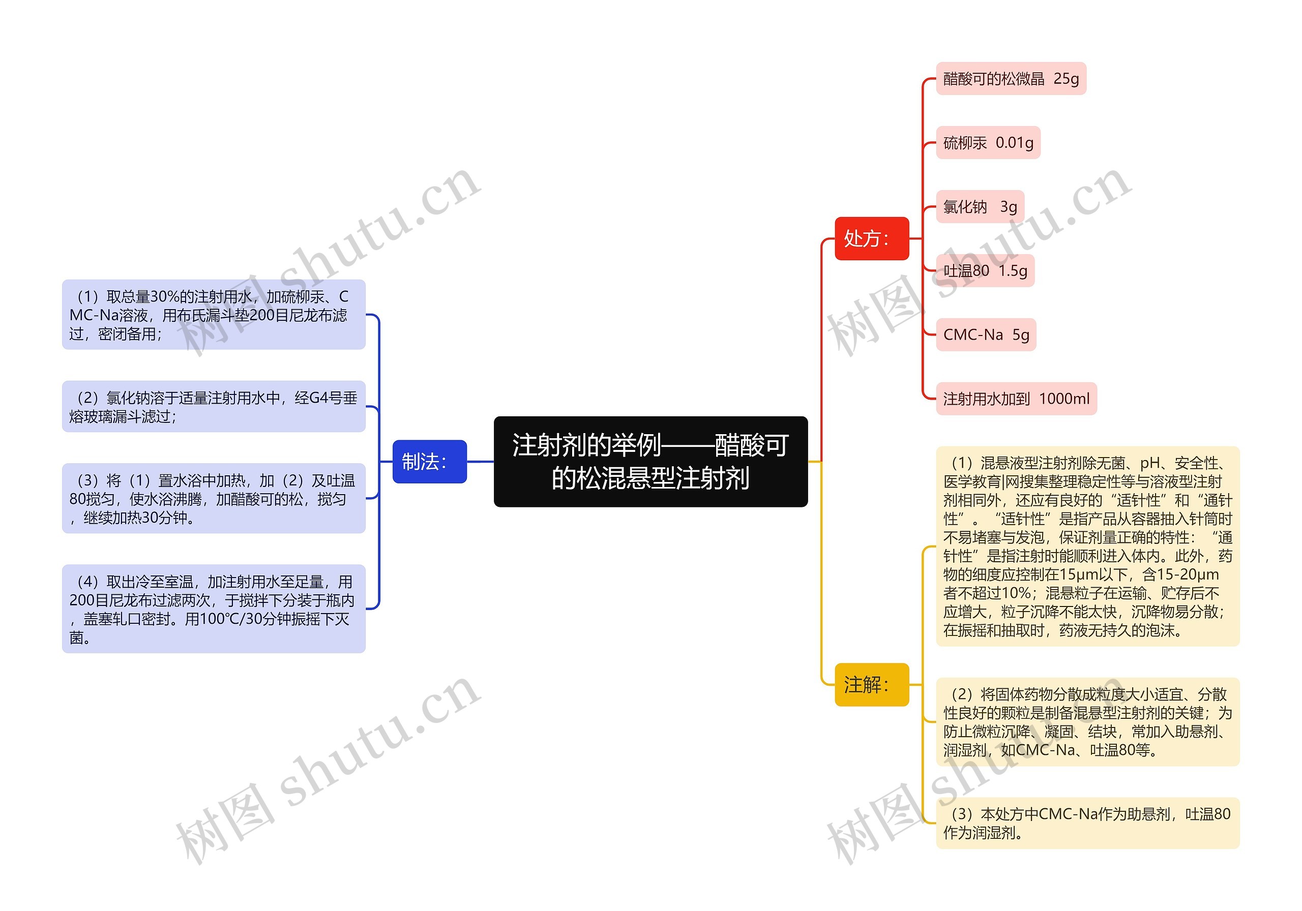 树图思维导图提供《注射剂的举例——醋酸可的松混悬型注射剂》在线思维导图免费制作,点击“编辑”按钮,可对《注射剂的举例——醋酸可的松混悬型注射剂》进行在线思维导图编辑,本思维导图属于思维导图模板主题,文件编号是:18976f7985f9e05118d4d515282189cf
