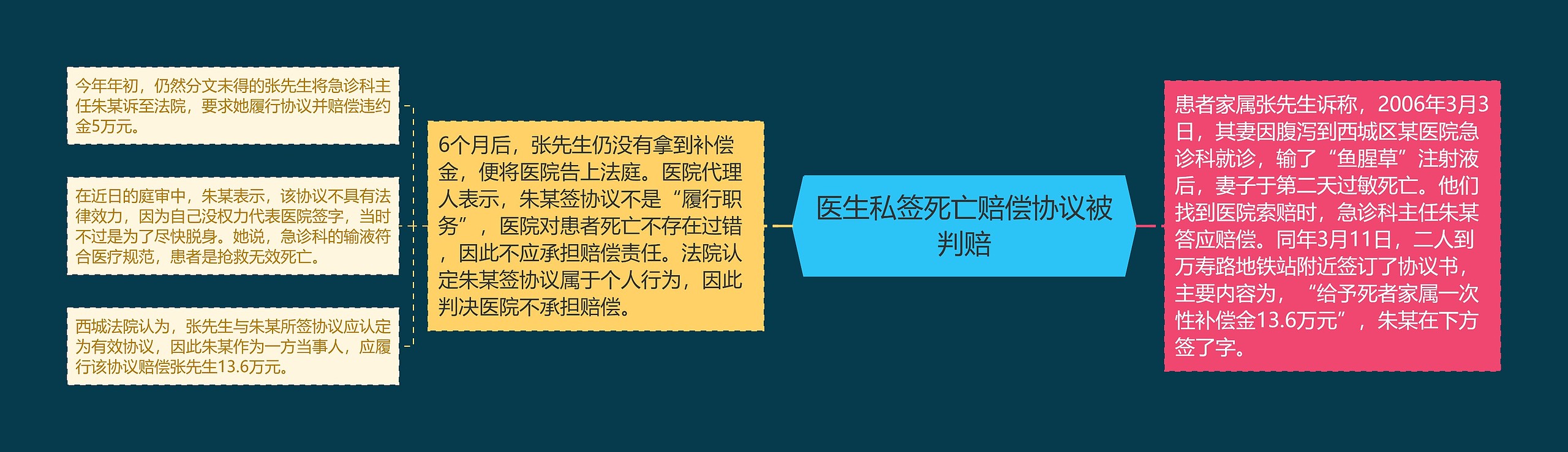 女子因腹泻就诊,输液后第二天死亡。家属找到医院索要赔偿,急诊科主任“挺身而出”,私下和家属签订协议,同意补偿13.6万元,拿不到钱的家属先后起诉医院和急诊科主任。西城法院判决协议有效,急诊科主任赔偿患者家属13.6万元,医院则不承担责任。