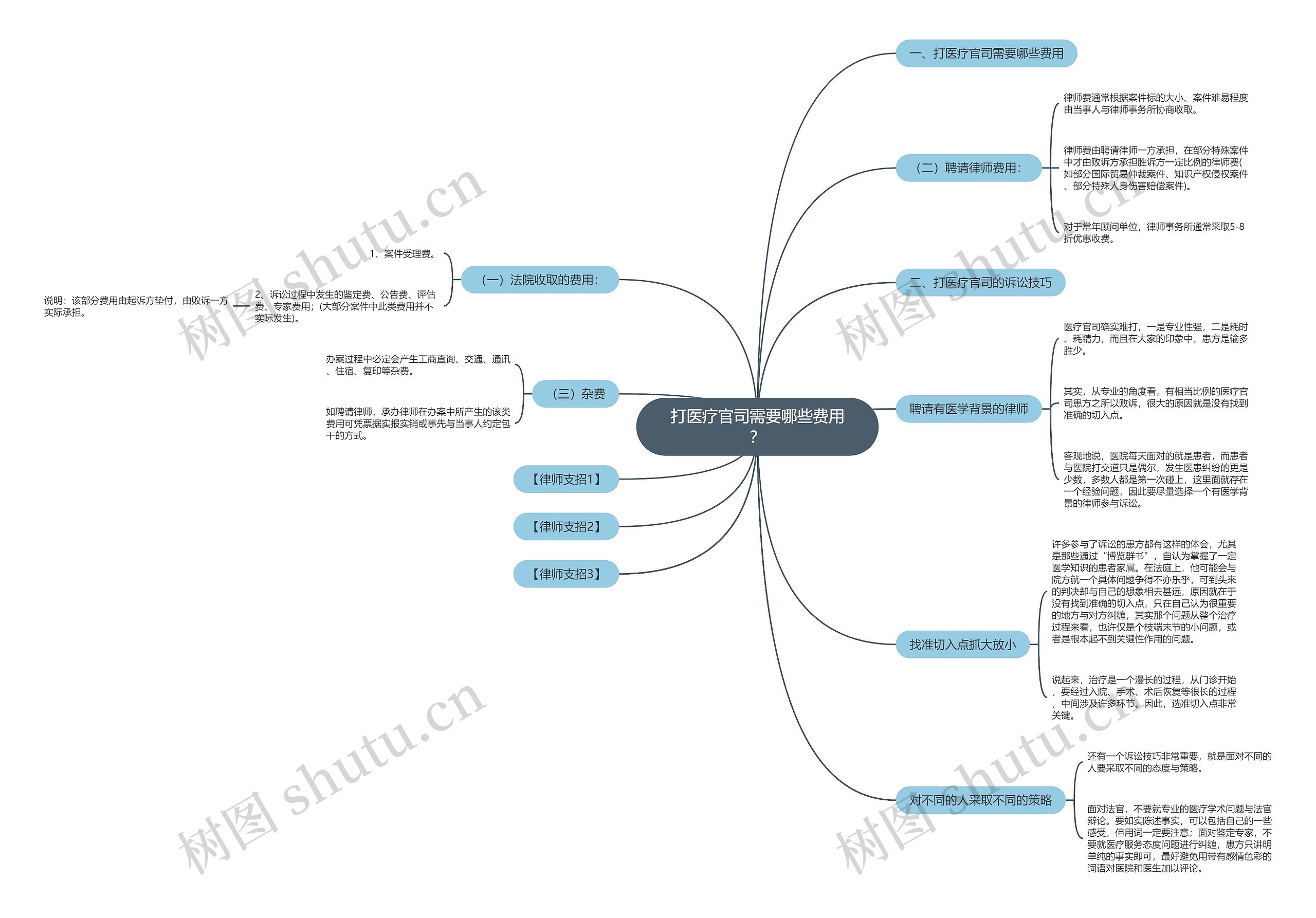 树图思维导图提供《打医疗官司需要哪些费用?》在线思维导图免费制作,点击“编辑”按钮,可对《打医疗官司需要哪些费用?》进行在线思维导图编辑,本思维导图属于思维导图模板主题,文件编号是:3d809c98eb7fbe6fec35b0a06833b530