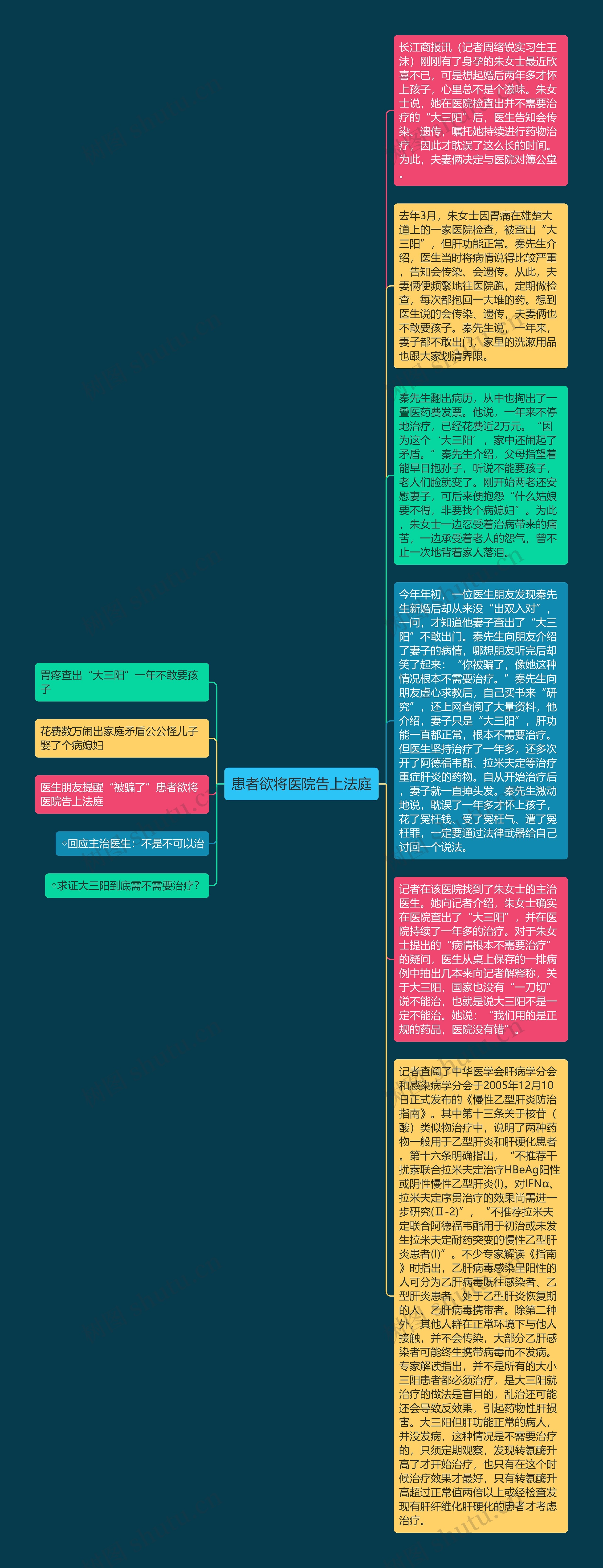 今年年初,一位医生朋友发现秦先生新婚后却从来没“出双入对”,一问,才知道他妻子查出了“大三阳”不敢出门。秦先生向朋友介绍了妻子的病情,哪想朋友听完后却笑了起来:“你被骗了,像她这种情况根本不需要治疗。”秦先生向朋友虚心求教后,自己买书来“研究”,还上网查阅了大量资料,他介绍,妻子只是“大三阳”,肝功能一直都正常,根本不需要治疗。但医生坚持治疗了一年多,还多次开了阿德福韦酯、拉米夫定等治疗重症肝炎的药物。自从开始治疗后,妻子就一直掉头发。秦先生激动地说,耽误了一年多才怀上孩子,花了冤枉钱、受了冤枉气、遭了冤枉罪,一定要通过法律武器给自己讨回一个说法。