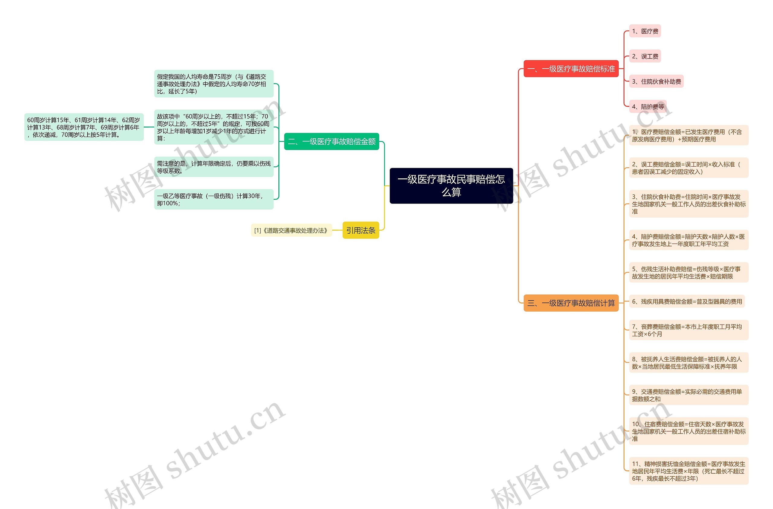 树图思维导图提供《一级医疗事故民事赔偿怎么算》在线思维导图免费制作,点击“编辑”按钮,可对《一级医疗事故民事赔偿怎么算》进行在线思维导图编辑,本思维导图属于思维导图模板主题,文件编号是:8f01c262c40de8d45c797687a5e763f7