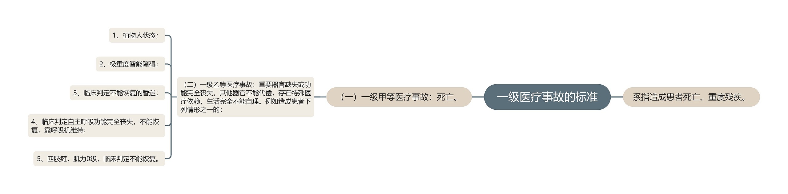 树图思维导图提供《一级医疗事故的标准》在线思维导图免费制作,点击“编辑”按钮,可对《一级医疗事故的标准》进行在线思维导图编辑,本思维导图属于思维导图模板主题,文件编号是:55ab89fe6750ecc03a12f5a00bd19104