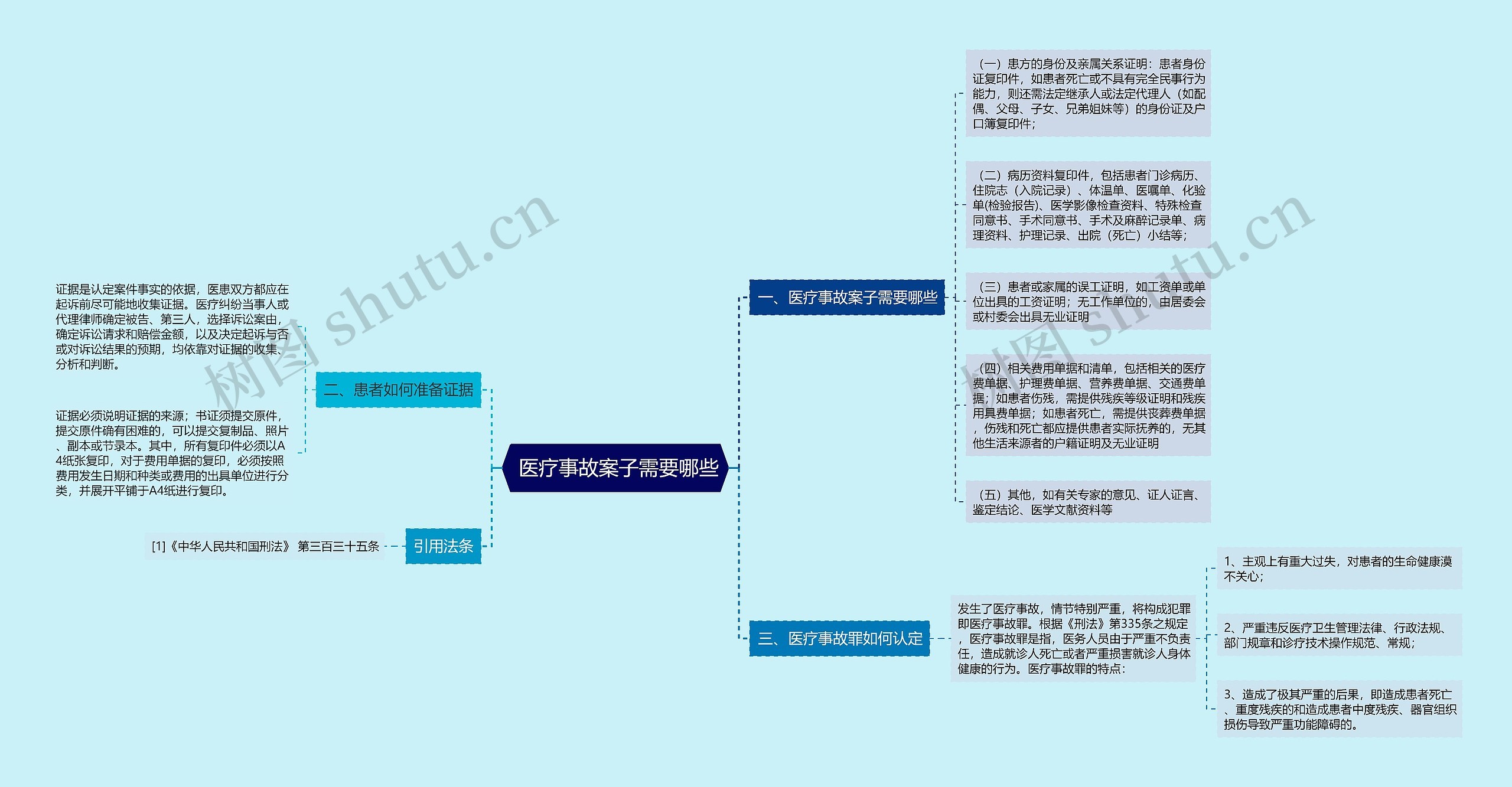 树图思维导图提供《 医疗事故案子需要哪些》在线思维导图免费制作,点击“编辑”按钮,可对《 医疗事故案子需要哪些》进行在线思维导图编辑,本思维导图属于思维导图模板主题,文件编号是:9d0a1b0e404b2c8909fadbde39847803