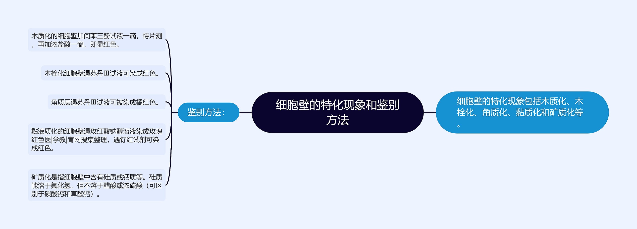 树图思维导图提供《细胞壁的特化现象和鉴别方法》在线思维导图免费制作,点击“编辑”按钮,可对《细胞壁的特化现象和鉴别方法》进行在线思维导图编辑,本思维导图属于思维导图模板主题,文件编号是:e076cc23f11241ed981125d4f71392b4