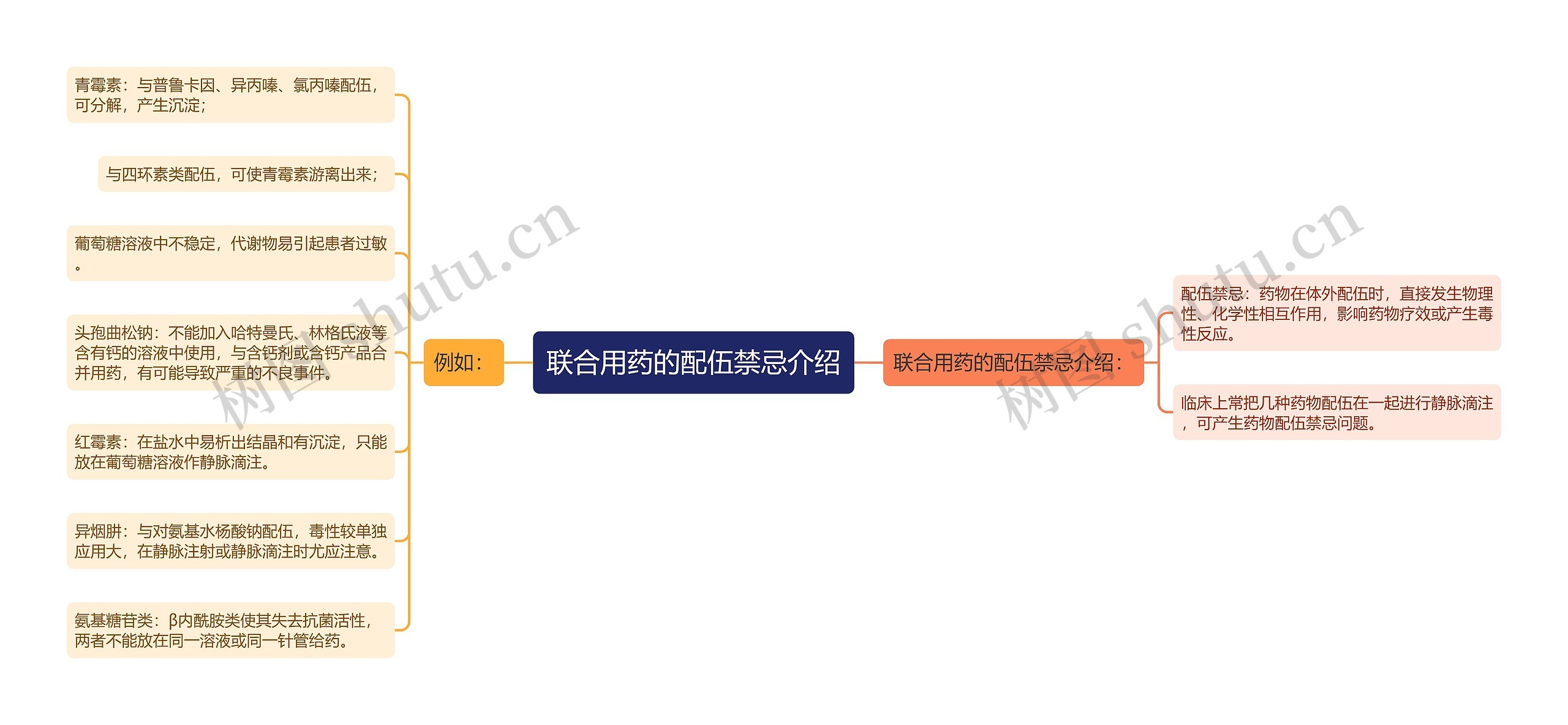 树图思维导图提供《联合用药的配伍禁忌介绍》在线思维导图免费制作,点击“编辑”按钮,可对《联合用药的配伍禁忌介绍》进行在线思维导图编辑,本思维导图属于思维导图模板主题,文件编号是:3be19e88ba69753fa652c599ad3ab486
