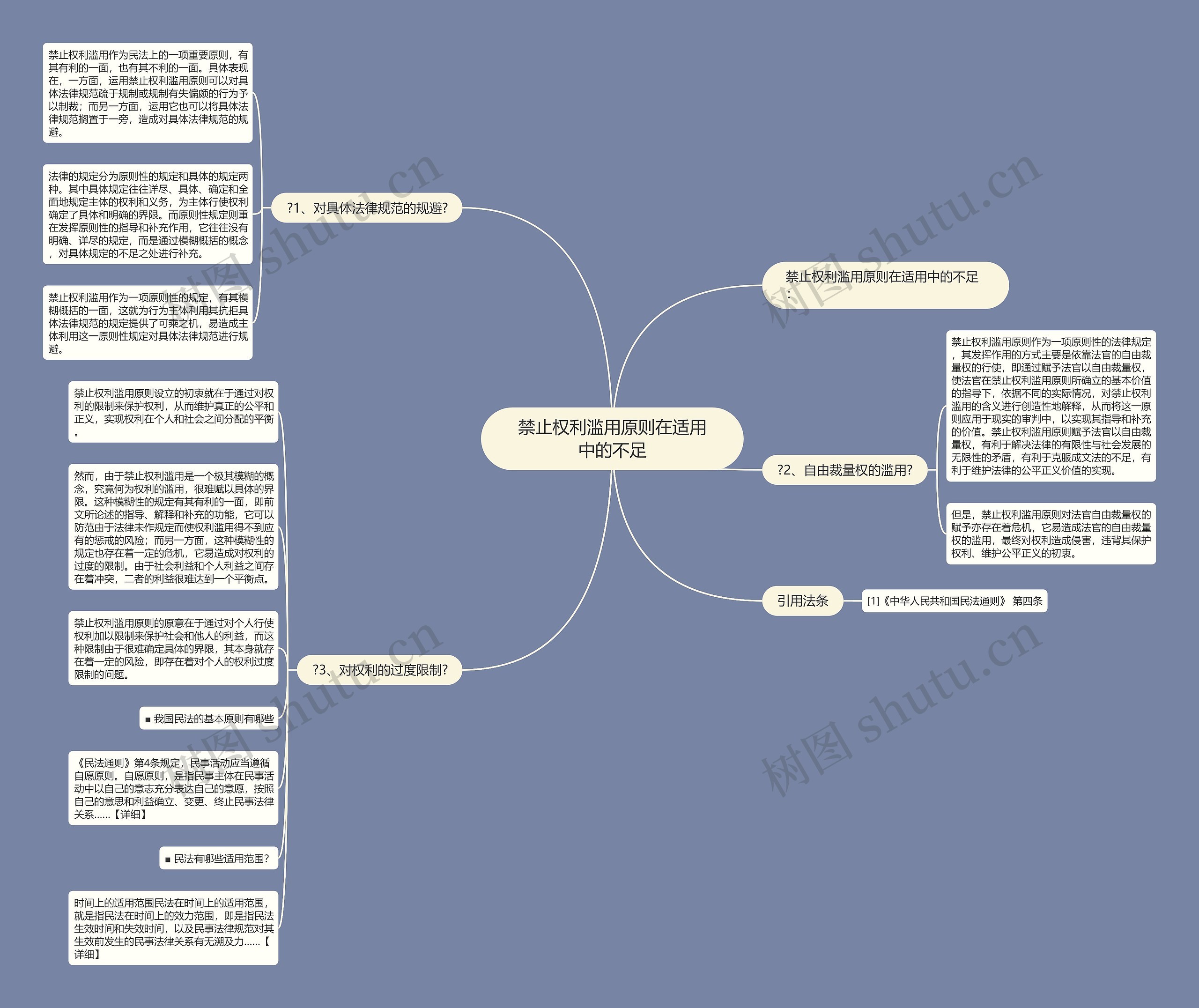 树图思维导图提供《禁止权利滥用原则在适用中的不足》在线思维导图免费制作,点击“编辑”按钮,可对《禁止权利滥用原则在适用中的不足》进行在线思维导图编辑,本思维导图属于思维导图模板主题,文件编号是:d8fece8275a0d8655361abd1583e0871