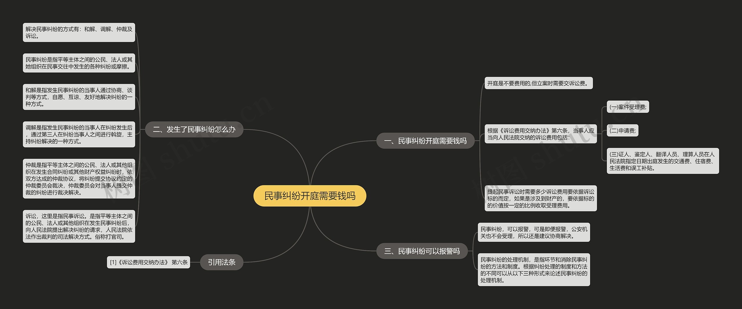 树图思维导图提供《民事纠纷开庭需要钱吗》在线思维导图免费制作,点击“编辑”按钮,可对《民事纠纷开庭需要钱吗》进行在线思维导图编辑,本思维导图属于思维导图模板主题,文件编号是:64425d49e9e919a882323a42a284cdd9