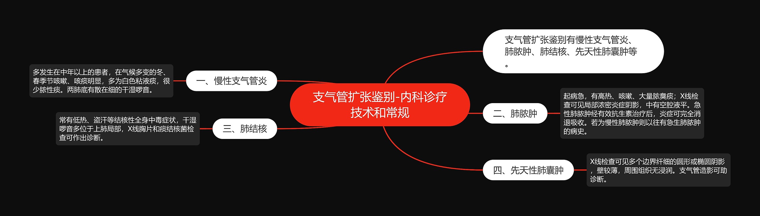 树图思维导图提供《支气管扩张鉴别-内科诊疗技术和常规》在线思维导图免费制作,点击“编辑”按钮,可对《支气管扩张鉴别-内科诊疗技术和常规》进行在线思维导图编辑,本思维导图属于思维导图模板主题,文件编号是:c06fea0b30212ab94a3cb7b74883b981