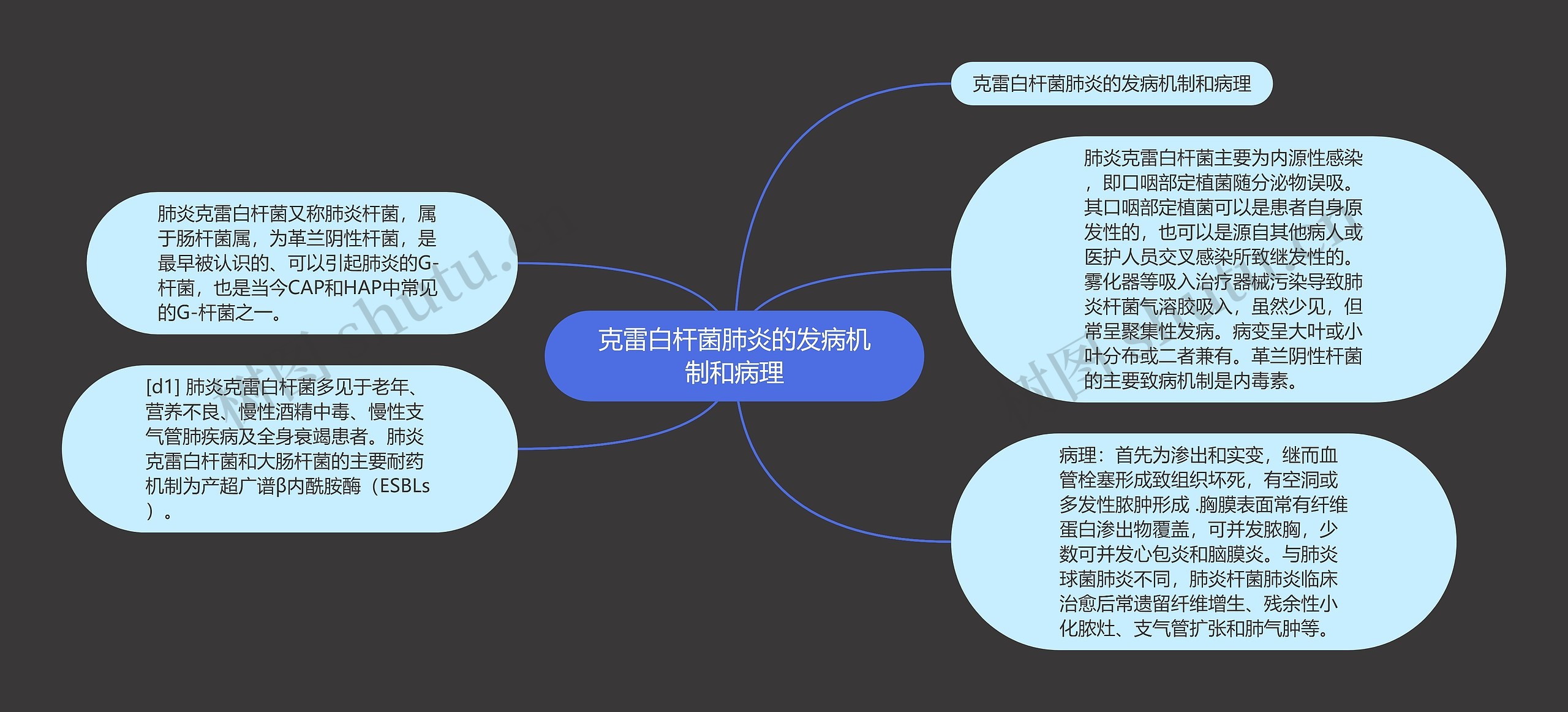克雷白杆菌肺炎的发病机制和病理是内科主治医师的部分内容,树图思维导图希望内科主治医师的考生认真复习,以便顺利通过考试! 克雷白杆菌肺炎的发病机制和病理 肺炎克雷白杆菌又称肺炎杆菌,属于肠杆菌属,为革兰阴性杆菌,是最早被认识的、可以引起肺炎的G-杆菌,也是当今CAP和HAP中常见的G-杆菌之一。