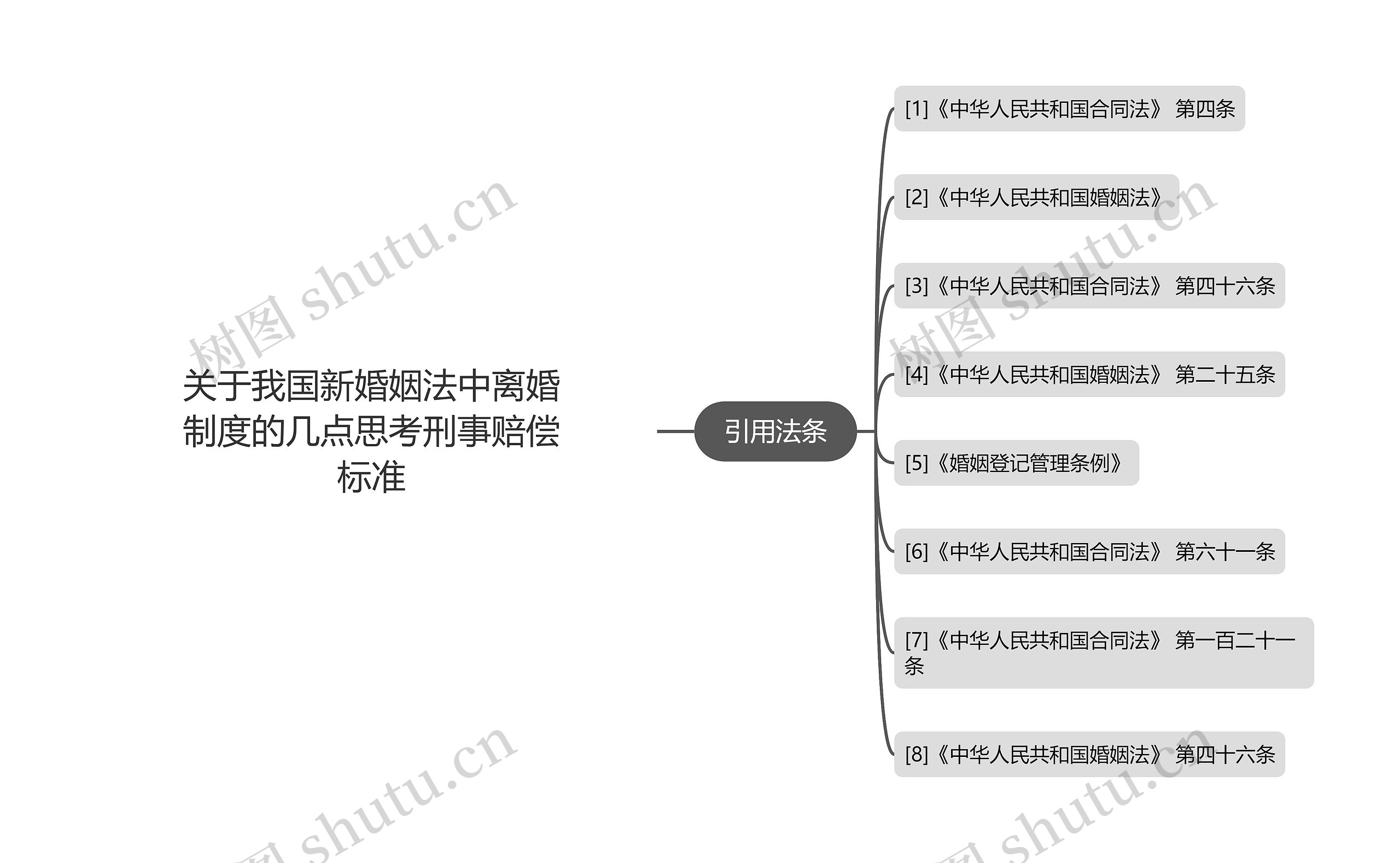 树图思维导图提供《关于我国新婚姻法中离婚制度的几点思考刑事赔偿标准》在线思维导图免费制作,点击“编辑”按钮,可对《关于我国新婚姻法中离婚制度的几点思考刑事赔偿标准》进行在线思维导图编辑,本思维导图属于思维导图模板主题,文件编号是:6a65a8e3edb0a4ac85bcc3040d4dab32