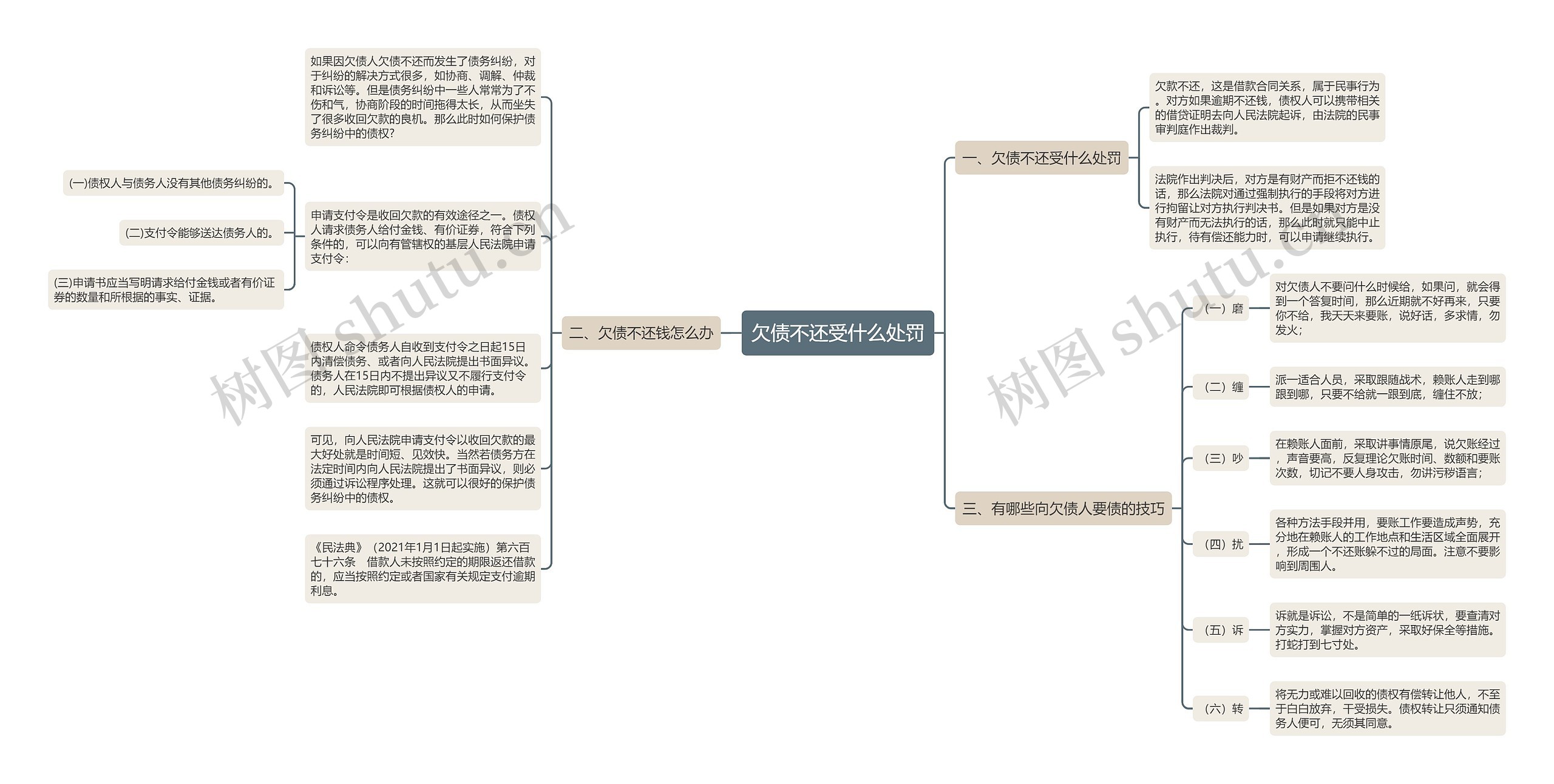 树图思维导图提供《欠债不还受什么处罚》在线思维导图免费制作,点击“编辑”按钮,可对《欠债不还受什么处罚》进行在线思维导图编辑,本思维导图属于思维导图模板主题,文件编号是:80b25a9ef5b95e036f81f4eece70fa93