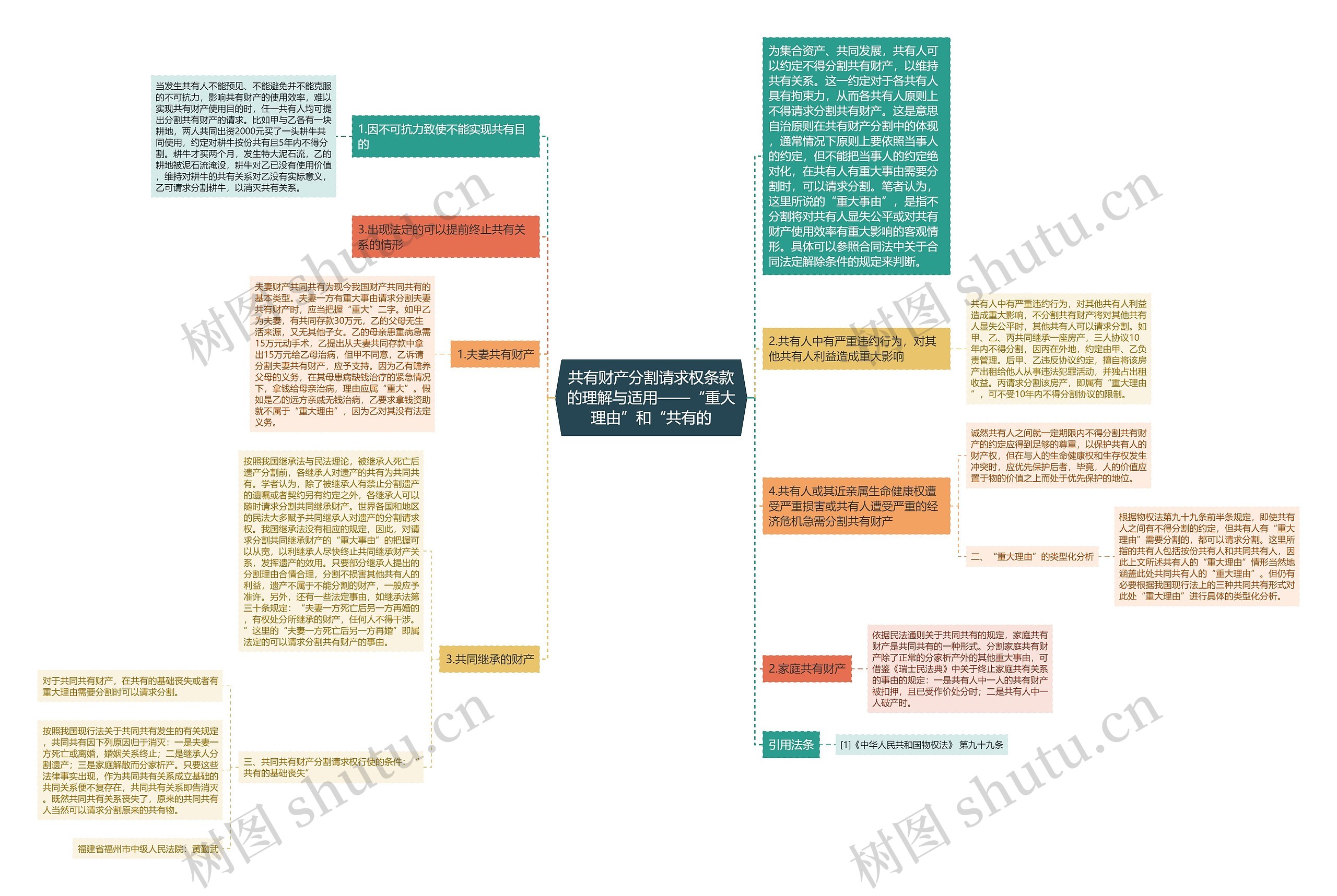 树图思维导图提供《共有财产分割请求权条款的理解与适用——“重大理由”和“共有的》在线思维导图免费制作,点击“编辑”按钮,可对《共有财产分割请求权条款的理解与适用——“重大理由”和“共有的》进行在线思维导图编辑,本思维导图属于思维导图模板主题,文件编号是:2e3c38e4042aea95ece43528da44e72c