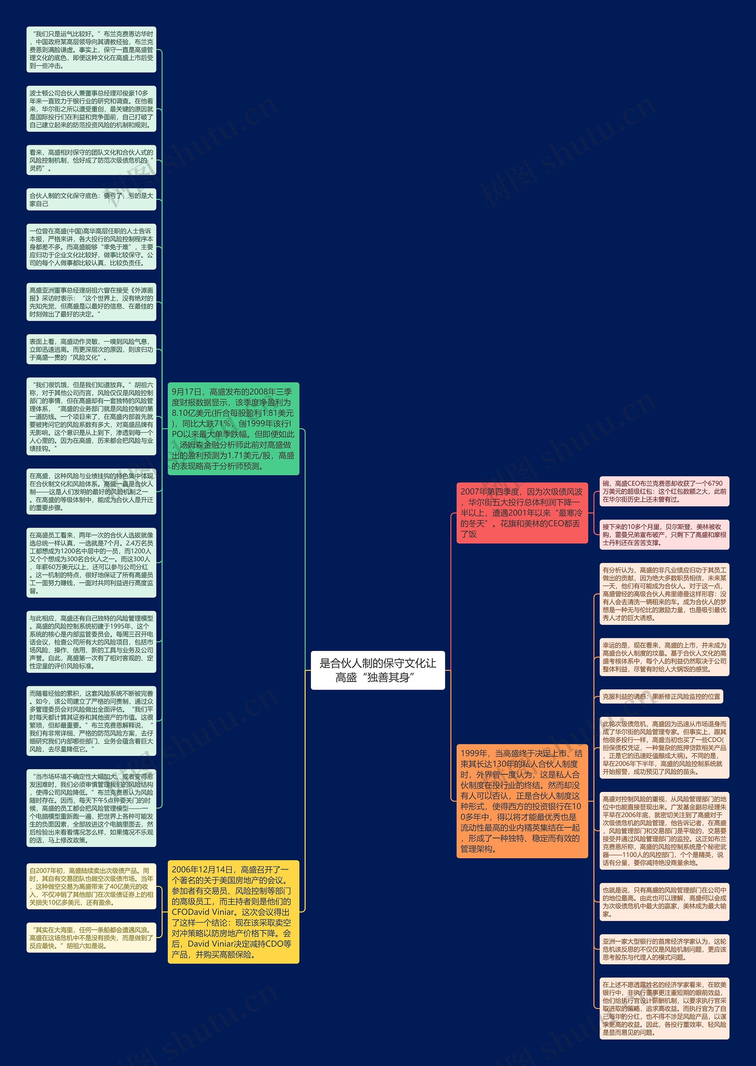 在高盛,这种风险与业绩挂钩的特色集中体现在合伙制文化和风险体系。高盛一直是合伙人制——这是人们发明的最好的风险机制之一。在高盛的等级体制中,能成为合伙人是升迁的重要步骤。