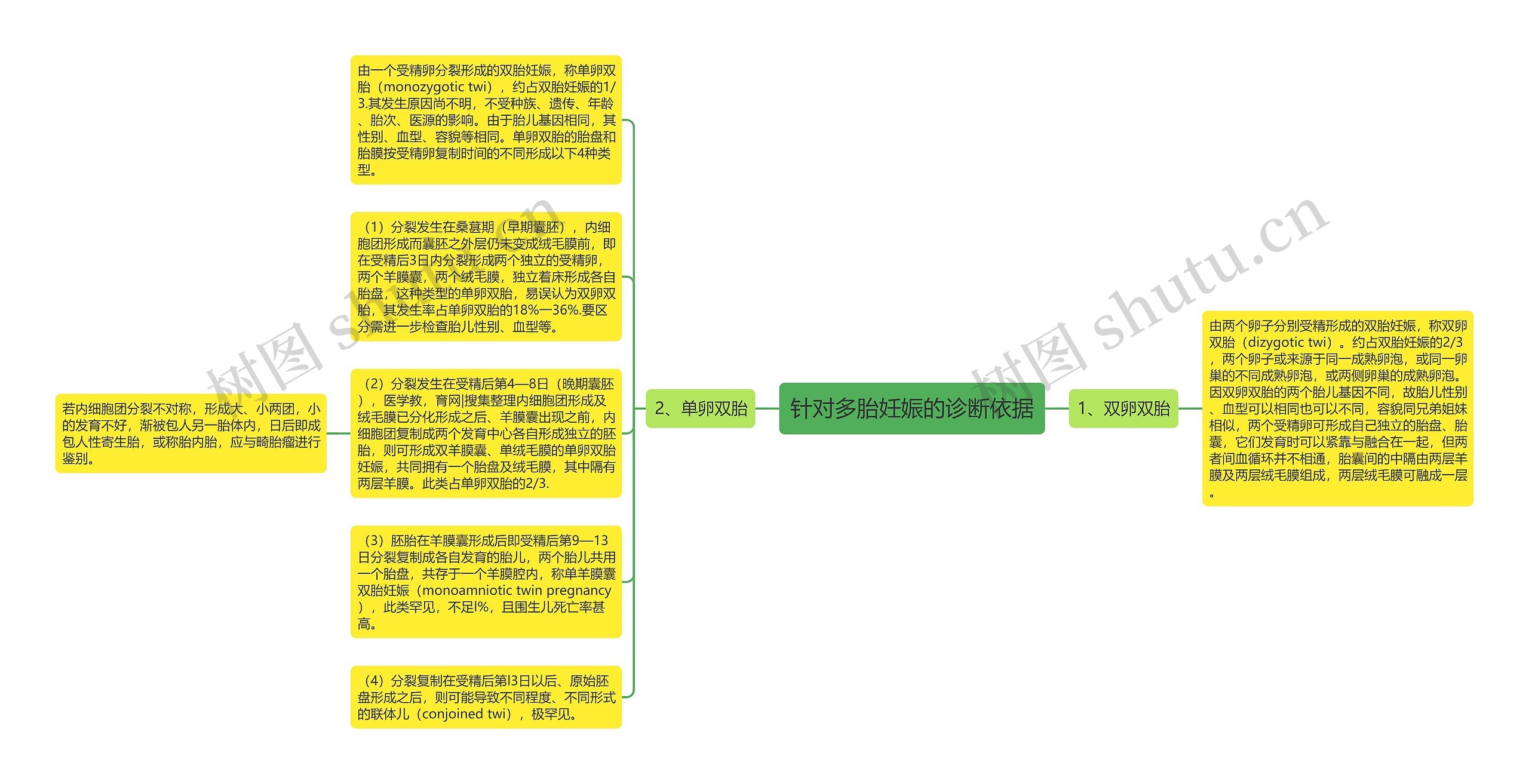 由一个受精卵分裂形成的双胎妊娠,称单卵双胎(monozygotic twi),约占双胎妊娠的1/3.其发生原因尚不明,不受种族、遗传、年龄、胎次、医源的影响。由于胎儿基因相同,其性别、血型、容貌等相同。单卵双胎的胎盘和胎膜按受精卵复制时间的不同形成以下4种类型。