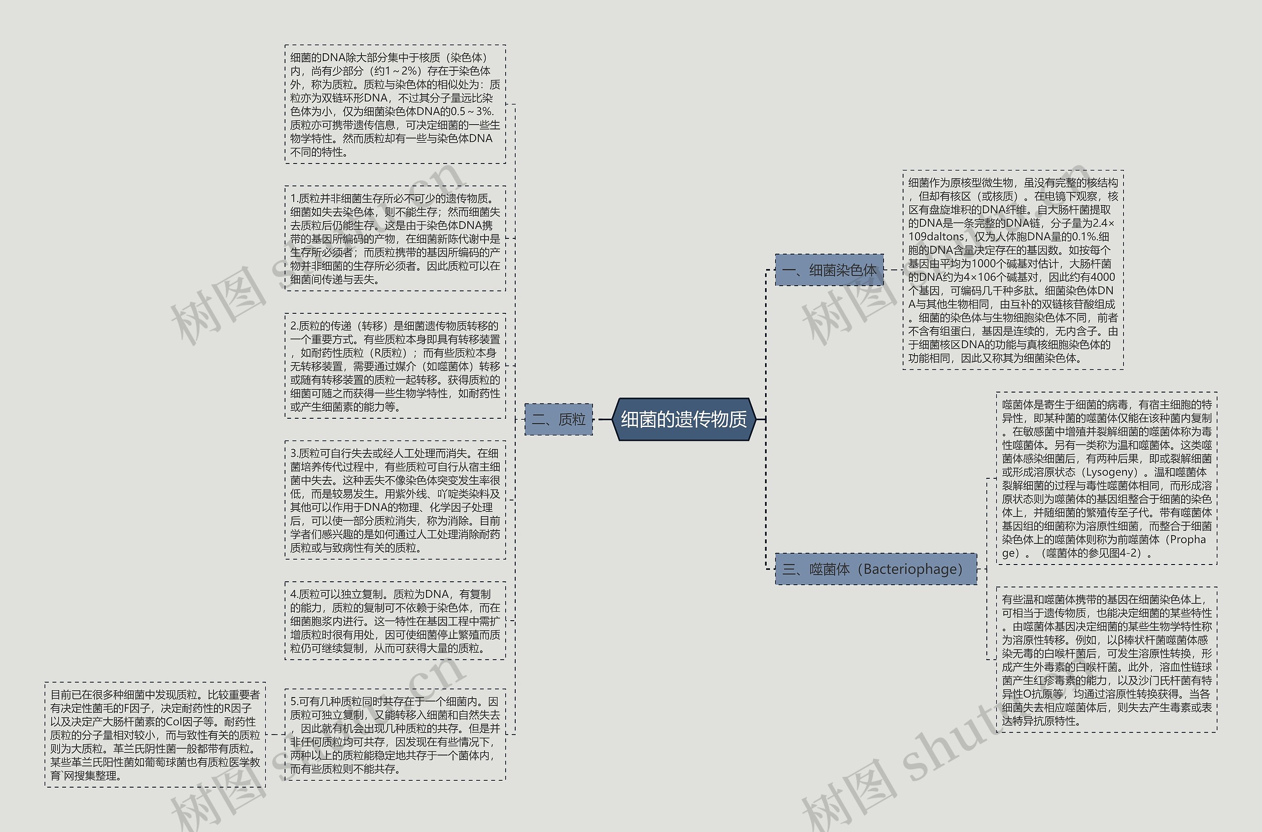 细菌的DNA除大部分集中于核质(染色体)内,尚有少部分(约1~2%)存在于染色体外,称为质粒。质粒与染色体的相似处为:质粒亦为双链环形DNA,不过其分子量远比染色体为小,仅为细菌染色体DNA的0.5~3%.质粒亦可携带遗传信息,可决定细菌的一些生物学特性。然而质粒却有一些与染色体DNA不同的特性。