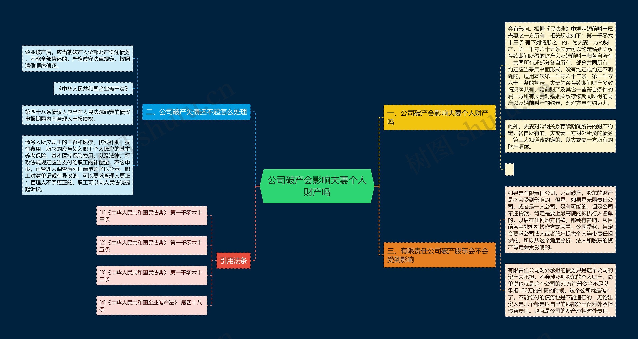 树图思维导图提供《公司破产会影响夫妻个人财产吗》在线思维导图免费制作,点击“编辑”按钮,可对《公司破产会影响夫妻个人财产吗》进行在线思维导图编辑,本思维导图属于思维导图模板主题,文件编号是:d566571a4c986a6ac713195cde40a146