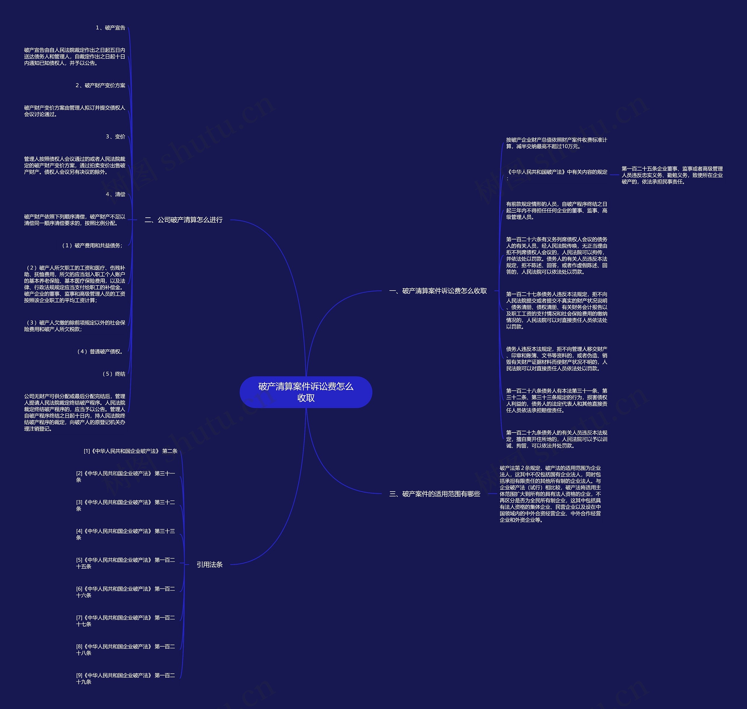 按破产企业财产总值依照财产案件收费标准计算,减半交纳最高不超过10万元。