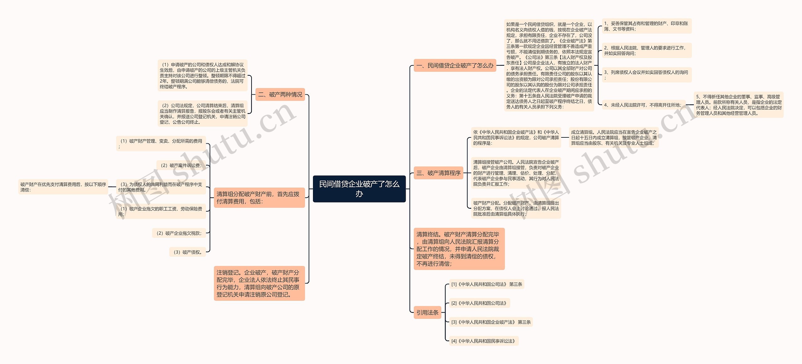 树图思维导图提供《民间借贷企业破产了怎么办》在线思维导图免费制作,点击“编辑”按钮,可对《民间借贷企业破产了怎么办》进行在线思维导图编辑,本思维导图属于思维导图模板主题,文件编号是:4de4a662756bf2f383be11cdb28ce268