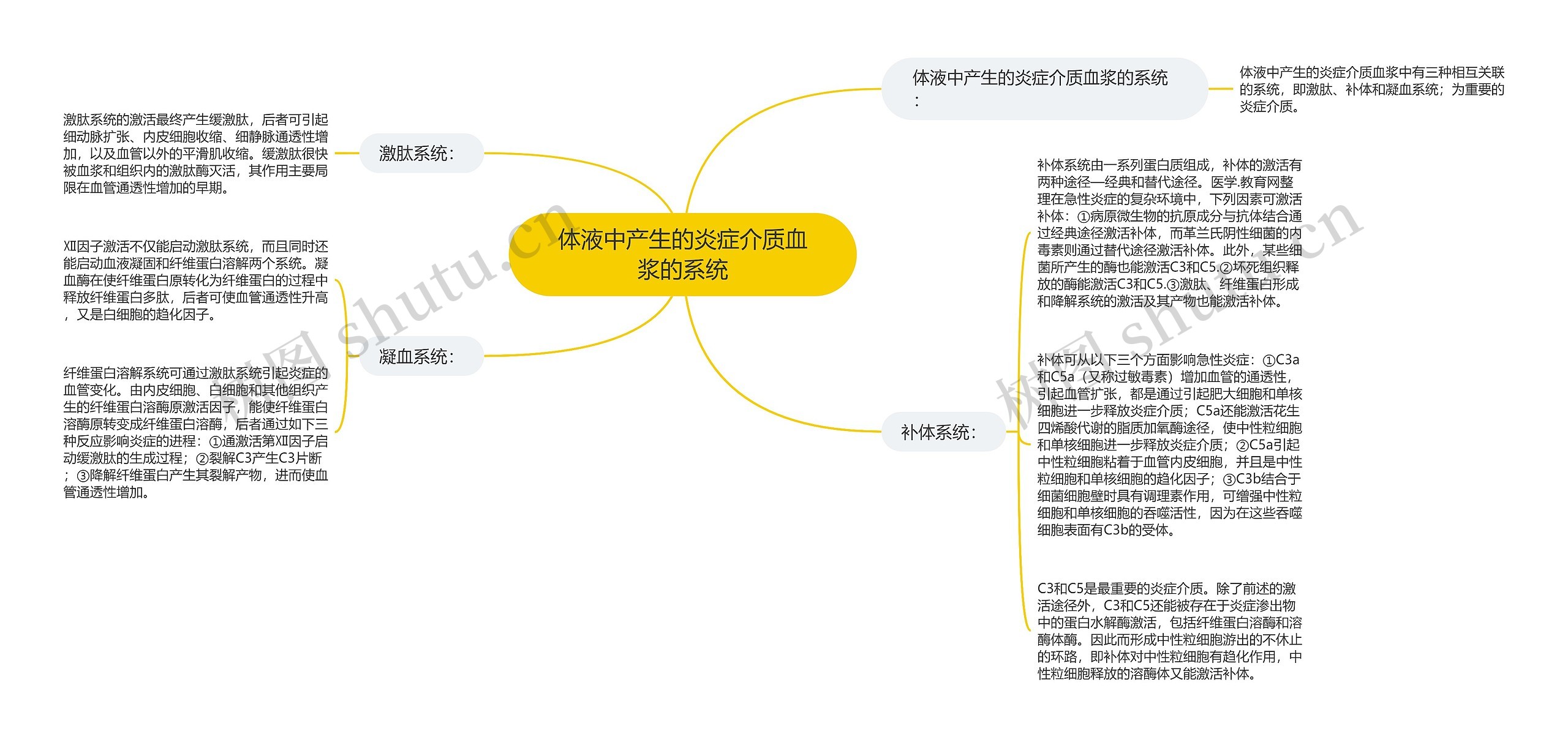 树图思维导图提供《体液中产生的炎症介质血浆的系统》在线思维导图免费制作,点击“编辑”按钮,可对《体液中产生的炎症介质血浆的系统》进行在线思维导图编辑,本思维导图属于思维导图模板主题,文件编号是:3ce847e10d8de4674a04145031af30ce