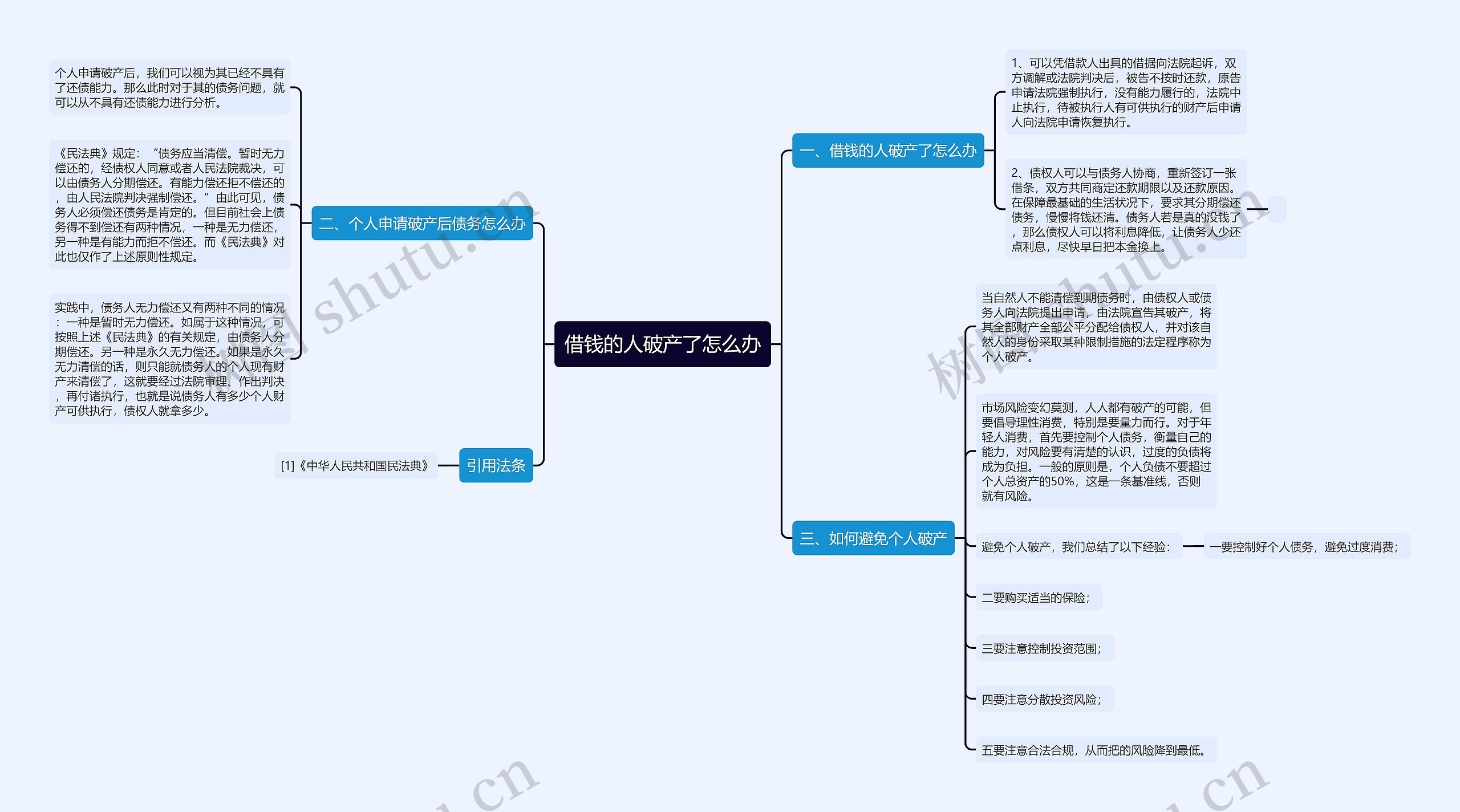 树图思维导图提供《借钱的人破产了怎么办》在线思维导图免费制作,点击“编辑”按钮,可对《借钱的人破产了怎么办》进行在线思维导图编辑,本思维导图属于思维导图模板主题,文件编号是:a7235a208e5ca661cca9440b4c6c3736