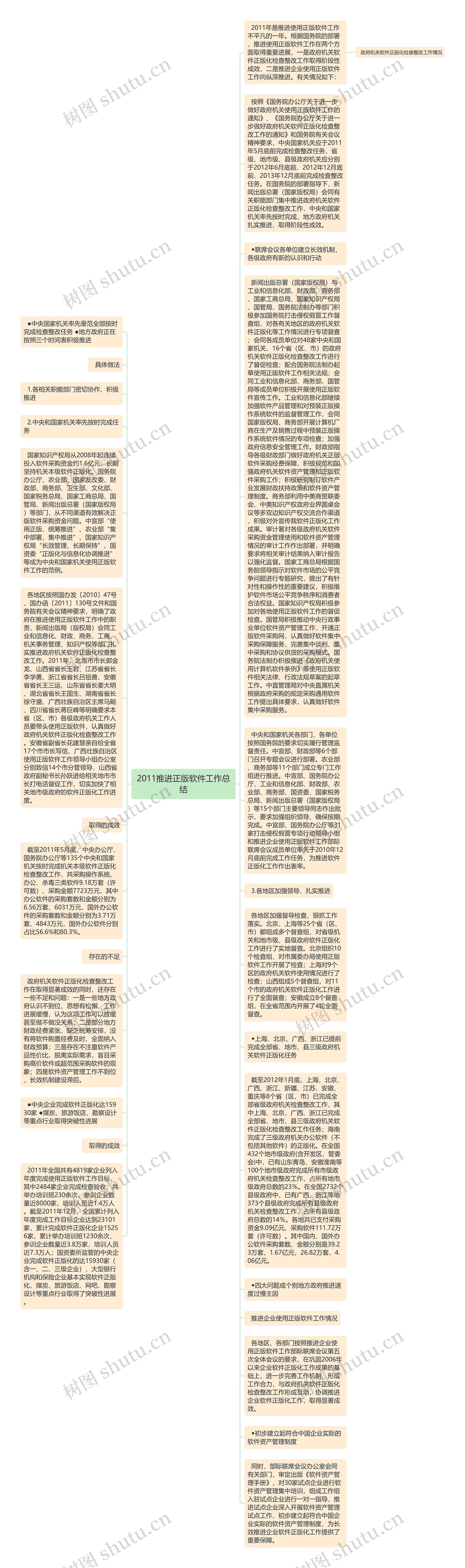 各地区按照国办发〔2010〕47号、国办函〔2011〕130号文件和国务院有关会议精神要求,明确了政府在推进使用正版软件工作中的职责,新闻出版局(版权局)会同工业和信息化、财政、商务、工商、机关事务管理、知识产权等部门扎实推进政府机关软件正版化检查整改工作。2011年,北京市市长郭金龙、山西省省长王君、江苏省省长李学勇、浙江省省长吕祖善、安徽省省长王三运、山东省省长姜大明、湖北省省长王国生、湖南省省长徐守盛、广西壮族自治区主席马飚、四川省省长蒋巨峰等明确要求本省(区、市)各级政府机关工作人员要带头使用正版软件,认真做好政府机关软件正版化检查整改工作。安徽省副省长花建慧亲自给全省17个市市长写信,广西壮族自治区使用正版软件工作领导小组办公室分别致信14个市分管领导,山西省政府副秘书长孙跃进给相关地市市长打电话督促工作,切实加快了相关地市级政府的软件正版化工作进度。