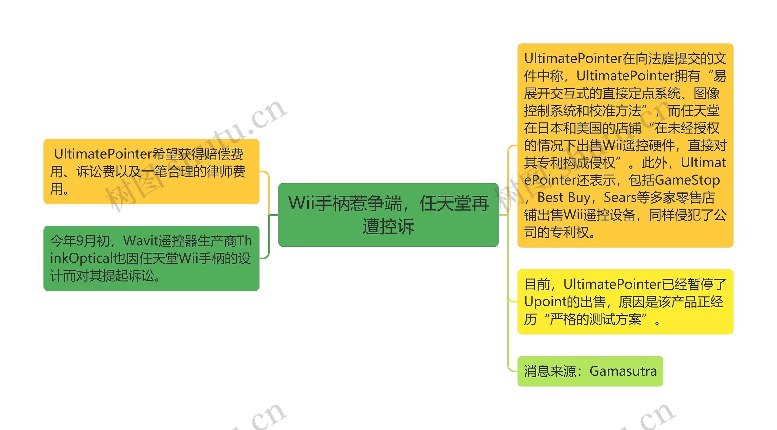 树图思维导图提供《Wii手柄惹争端,任天堂再遭控诉》在线思维导图免费制作,点击“编辑”按钮,可对《Wii手柄惹争端,任天堂再遭控诉》进行在线思维导图编辑,本思维导图属于思维导图模板主题,文件编号是:0430a9b6c67fba173e47b269fe140631