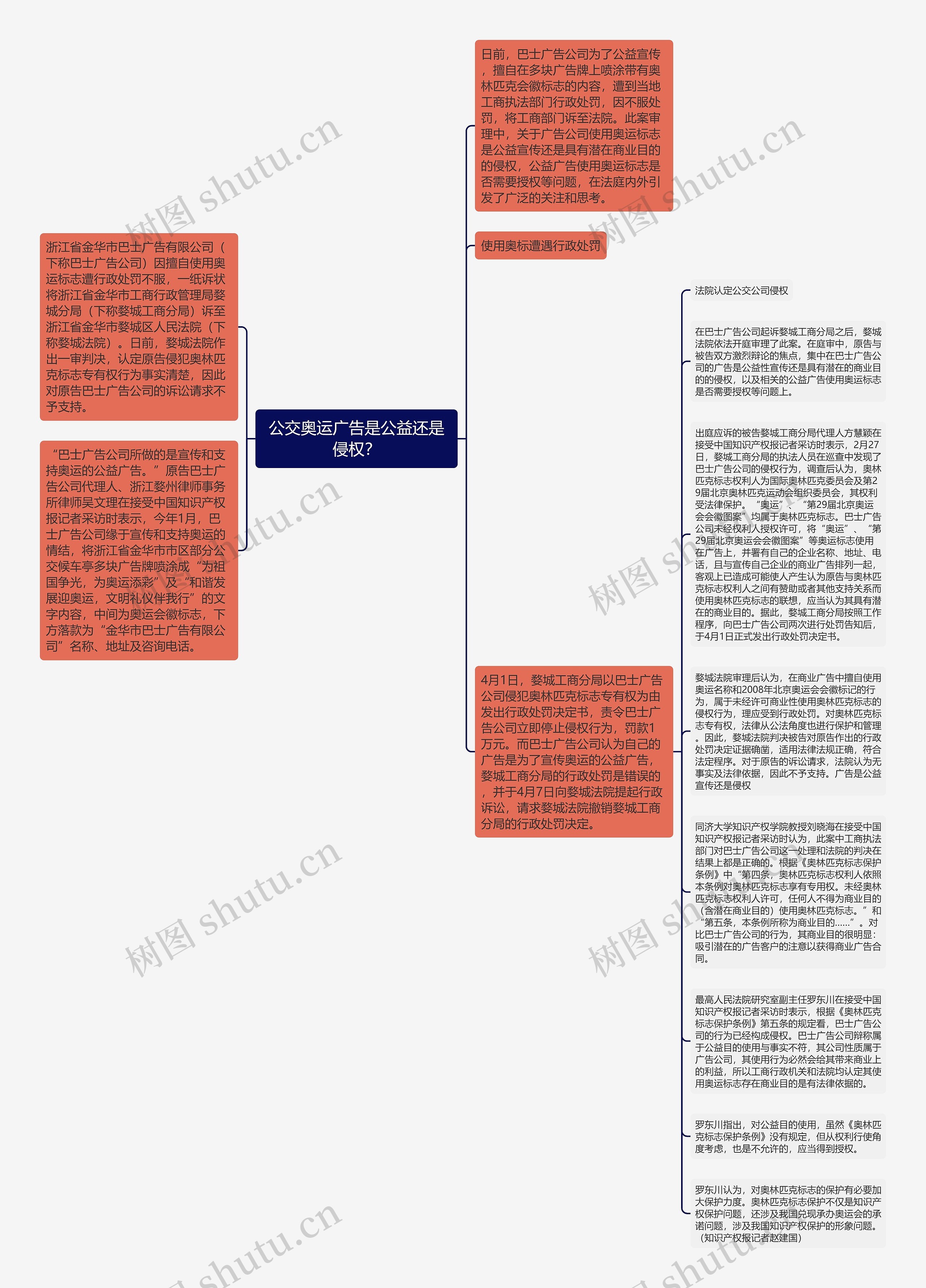 最高人民法院研究室副主任罗东川在接受中国知识产权报记者采访时表示,根据《奥林匹克标志保护条例》第五条的规定看,巴士广告公司的行为已经构成侵权。巴士广告公司辩称属于公益目的使用与事实不符,其公司性质属于广告公司,其使用行为必然会给其带来商业上的利益,所以工商行政机关和法院均认定其使用奥运标志存在商业目的是有法律依据的。