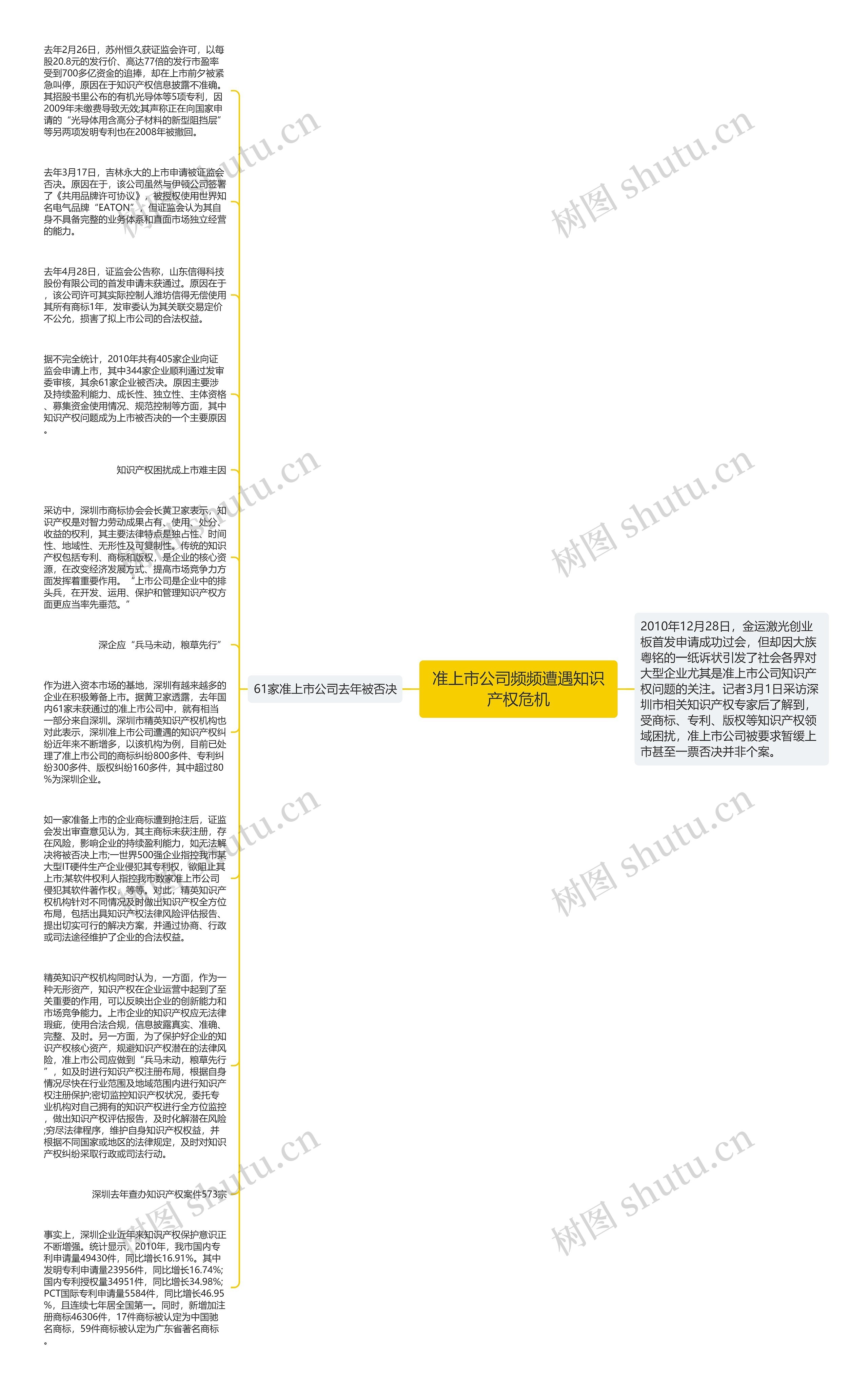 作为进入资本市场的基地,深圳有越来越多的企业在积极筹备上市。据黄卫家透露,去年国内61家未获通过的准上市公司中,就有相当一部分来自深圳。深圳市精英知识产权机构也对此表示,深圳准上市公司遭遇的知识产权纠纷近年来不断增多,以该机构为例,目前已处理了准上市公司的商标纠纷800多件、专利纠纷300多件、版权纠纷160多件,其中超过80%为深圳企业。