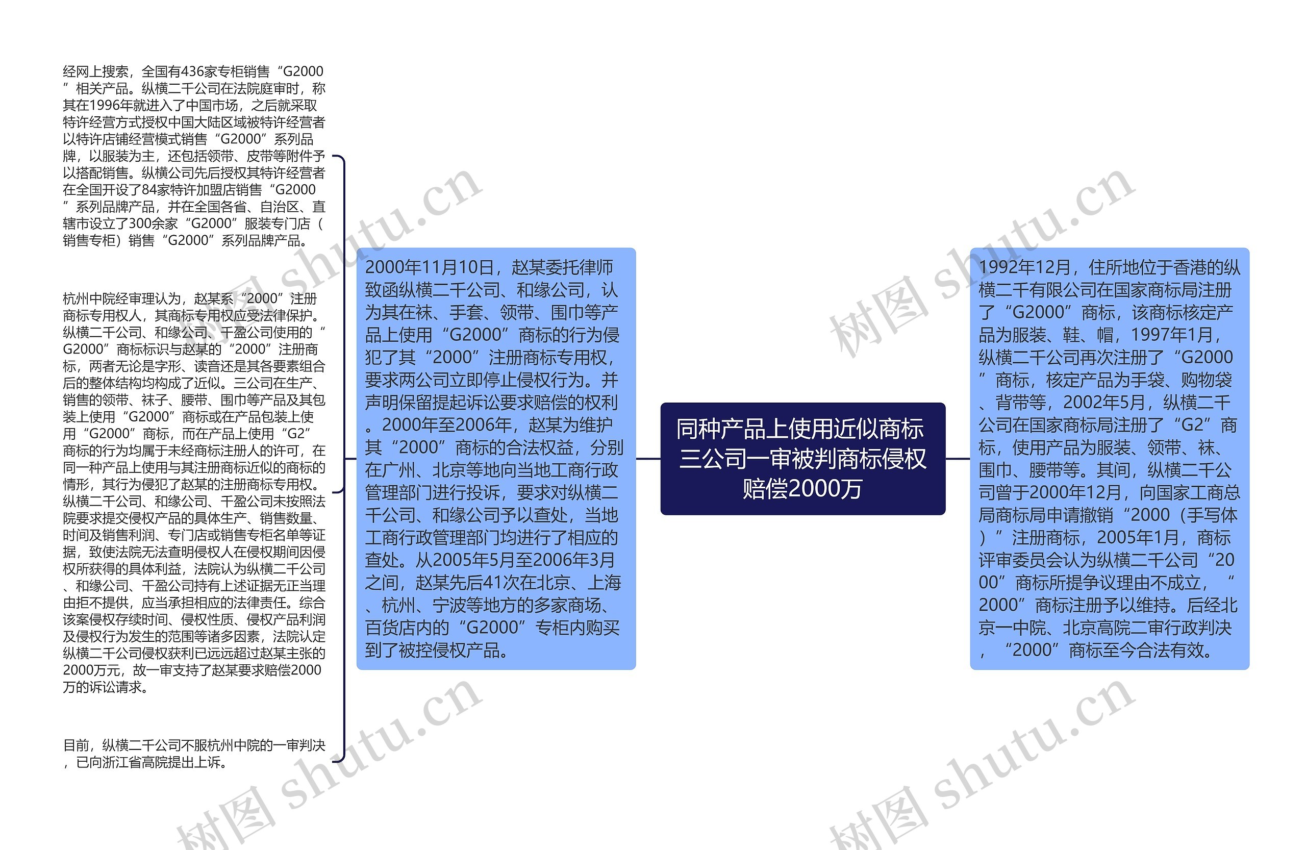 树图思维导图提供《同种产品上使用近似商标 三公司一审被判商标侵权赔偿2000万》在线思维导图免费制作,点击“编辑”按钮,可对《同种产品上使用近似商标 三公司一审被判商标侵权赔偿2000万》进行在线思维导图编辑,本思维导图属于思维导图模板主题,文件编号是:5155ac1c66dc289d73b376a2ff3d7077