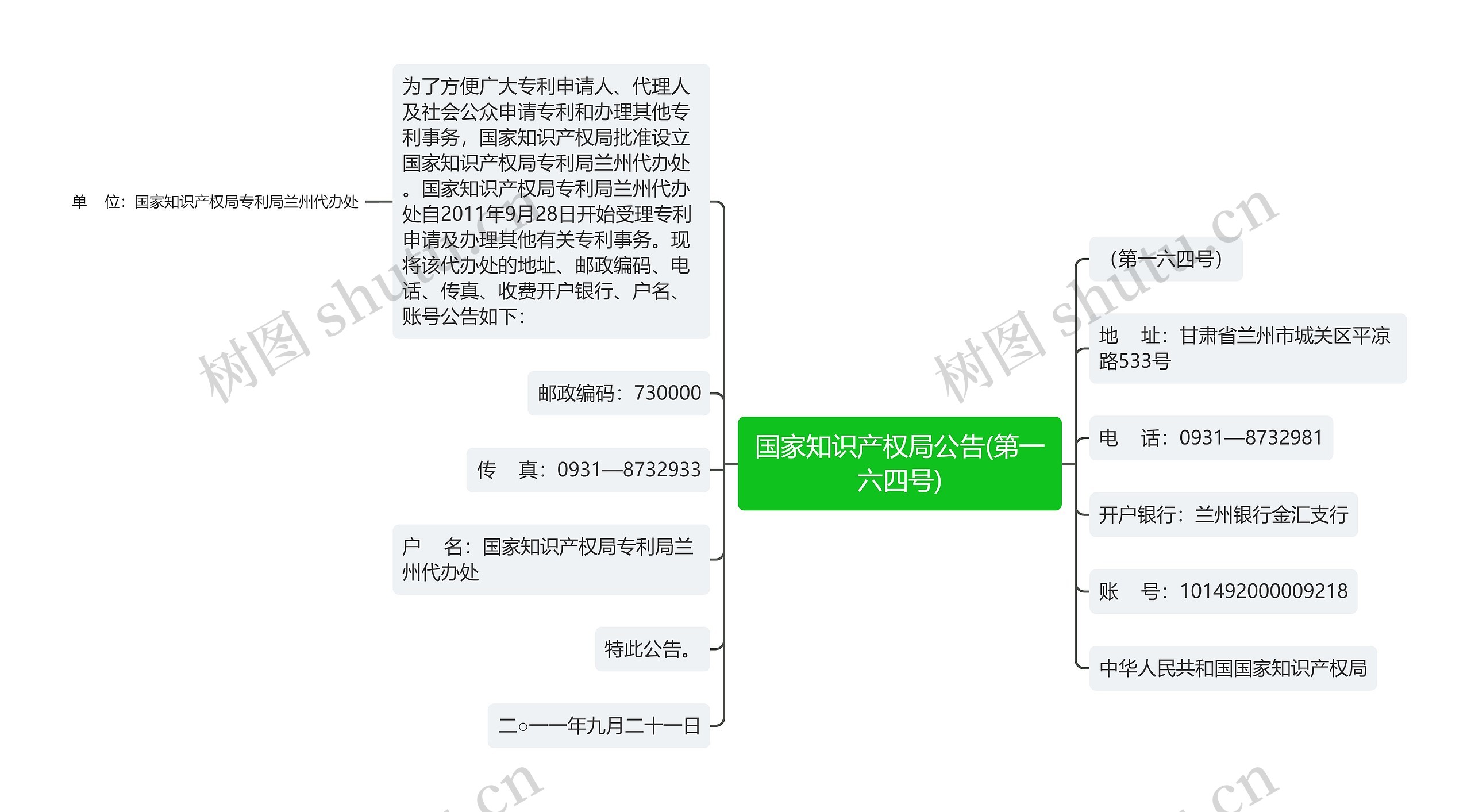 树图思维导图提供《国家知识产权局公告(第一六四号)》在线思维导图免费制作,点击“编辑”按钮,可对《国家知识产权局公告(第一六四号)》进行在线思维导图编辑,本思维导图属于思维导图模板主题,文件编号是:d865f1ad41427f74742dfcc8e68ae1e1